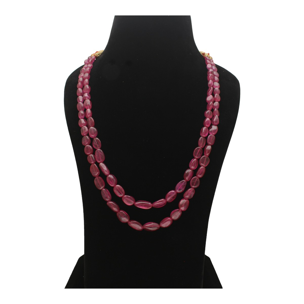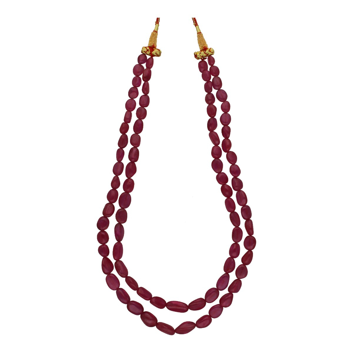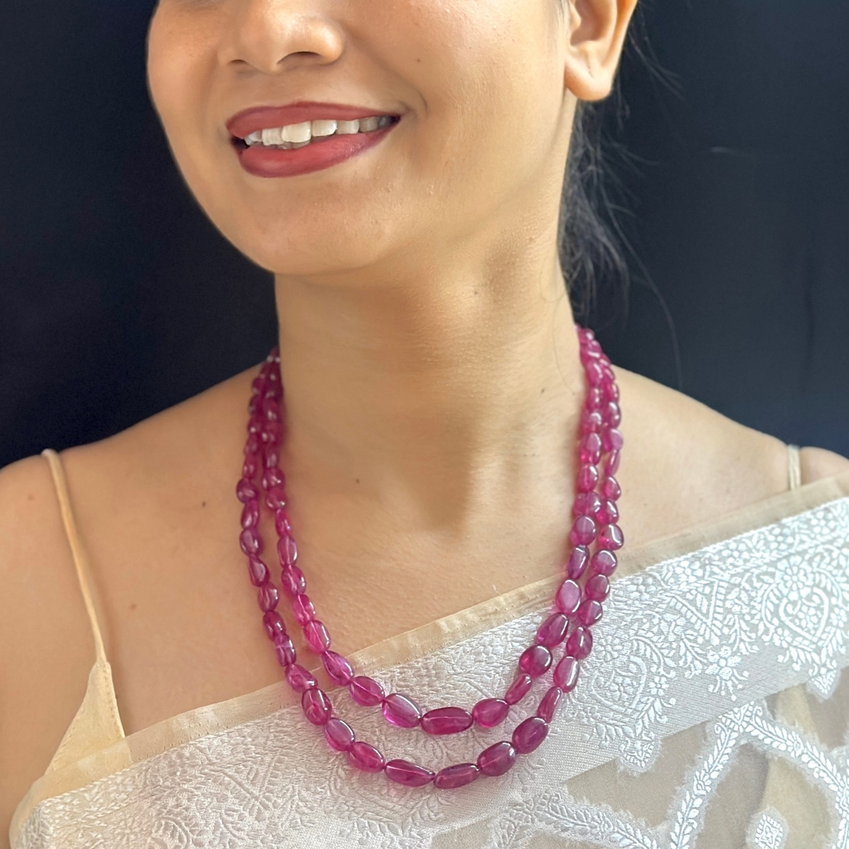 Passion and prestige unite in this classic ruby oval necklace. With two strands of natural rubies, it radiates warmth, strength, and aristocratic beauty.