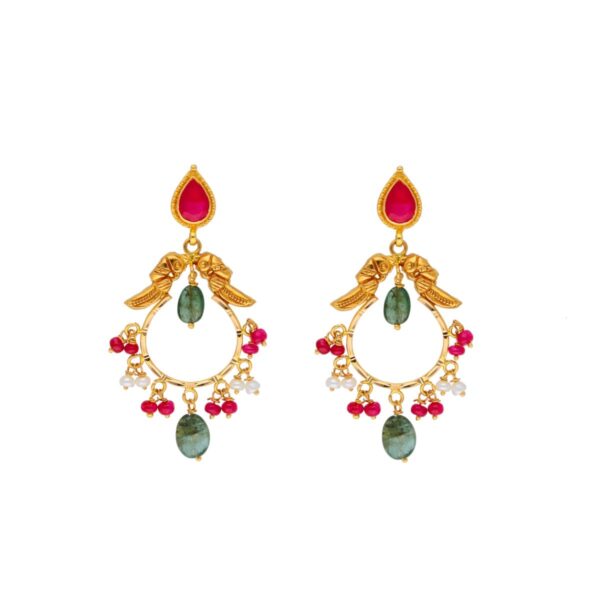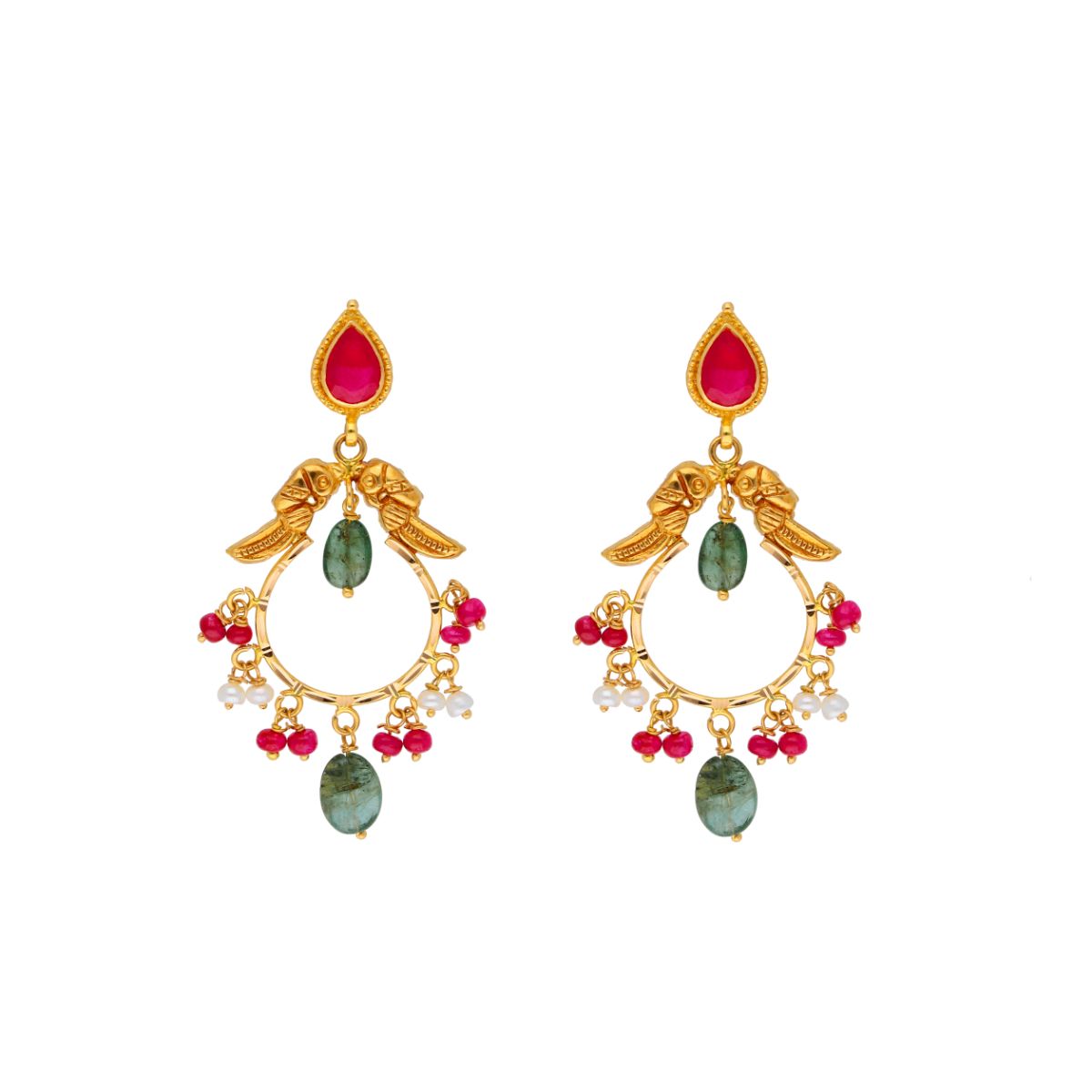 22KT Chandbalis Style Handcrafted Gold EarringsProduct code:JPMAR-20-06Gold weight:5.82Stone weight:5Stone Name:Freshwater Pearls , Ruby Gold purity:22KTBrand:Sri Jagdamba Pearls Dealer