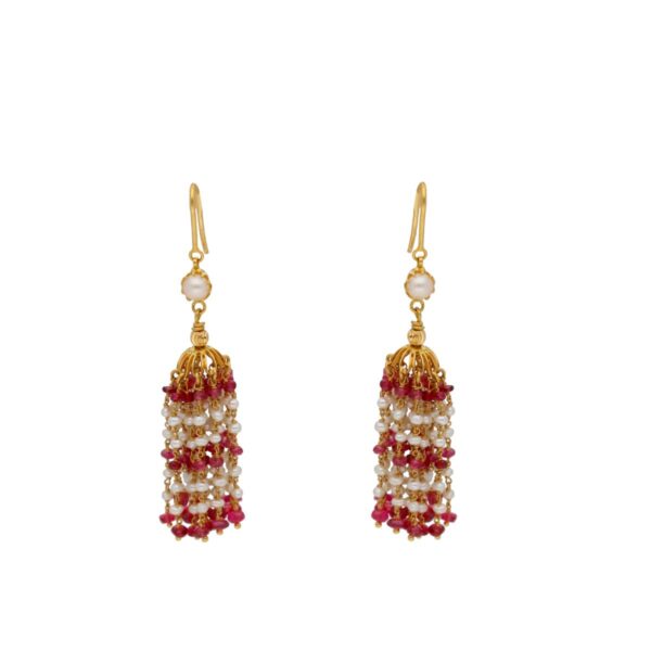 22KT Dahanapriya Style Handcrafted Gold EarringsProduct code:JPNOV-20-15Gold weight:6.466Stone weight:7.67Stone Name:Freshwater Pearls , Ruby Gold purity:22KTBrand:Sri Jagdamba Pearls Dealer