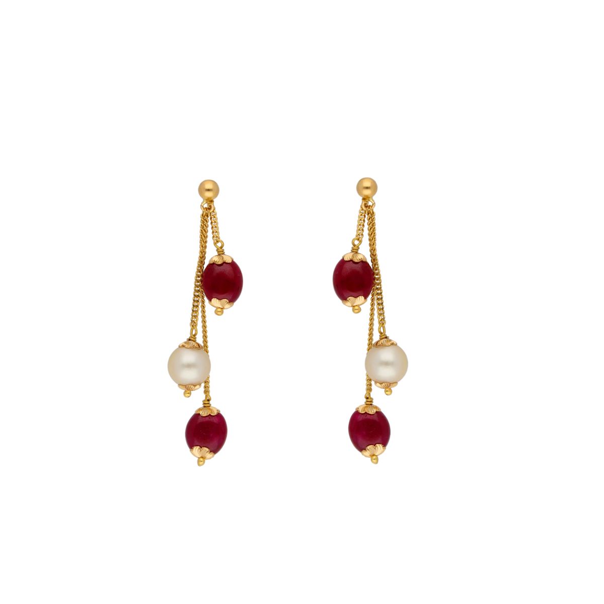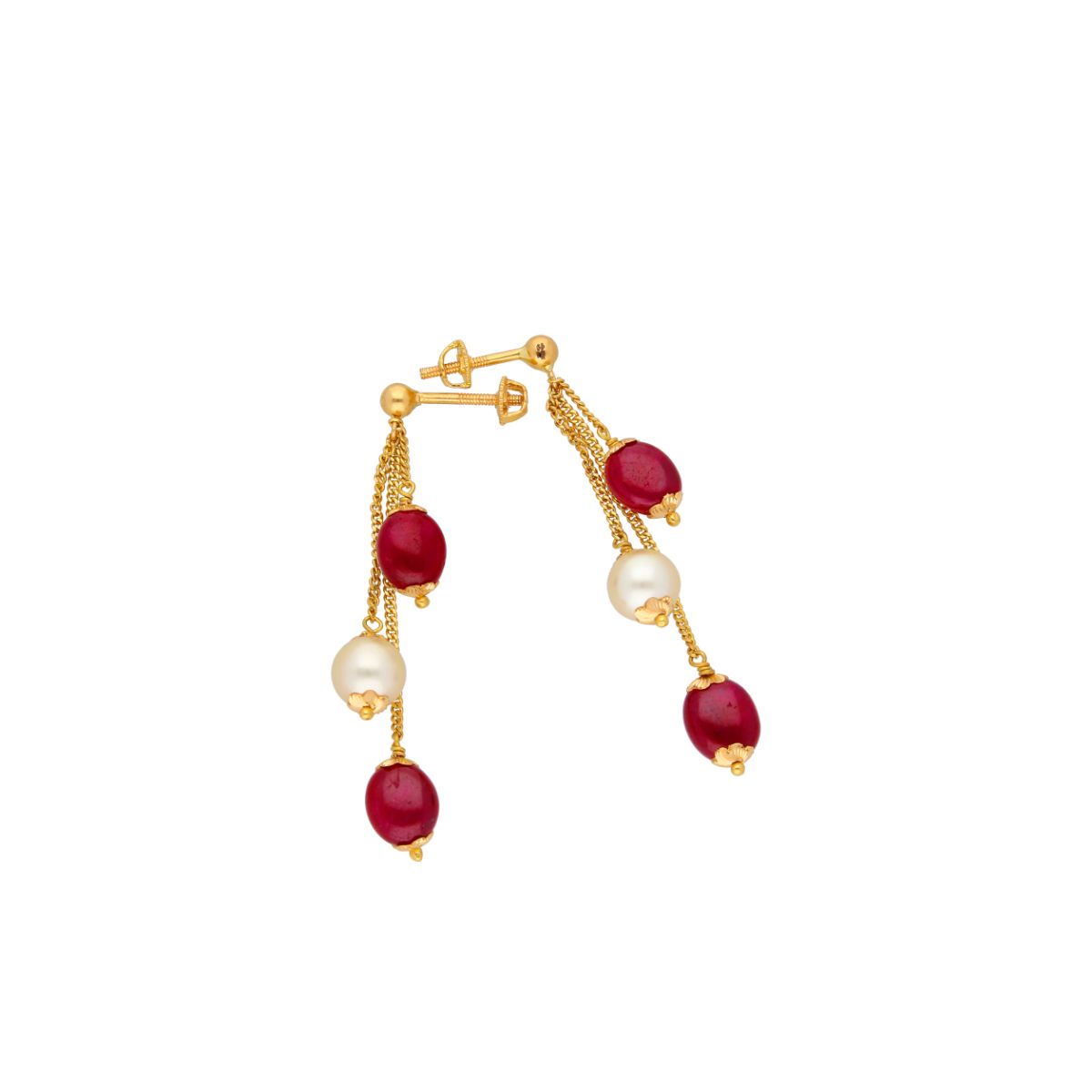 22KT Hangings Style Contemporary Gold EarringsProduct code:JPFEB-20-252Gold weight:3.9Stone weight:13.9Stone Name:South sea Pearls , Ruby Gold purity:22KTBrand:Sri Jagdamba Pearls Dealer