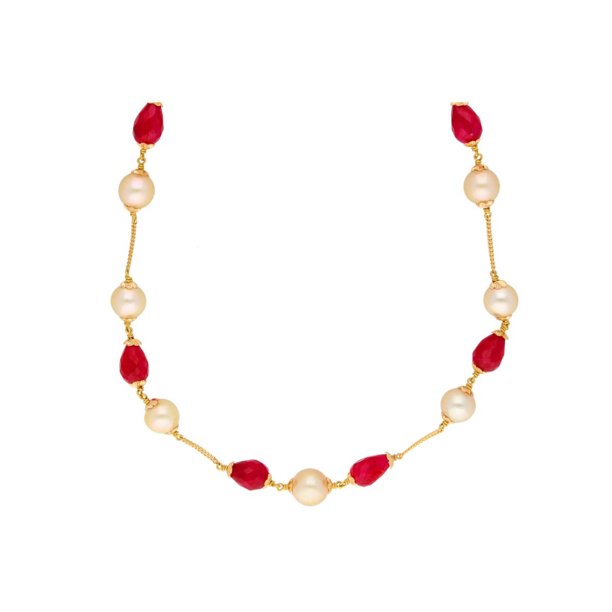 22KT Designer Gold Chains Style Contemporary Gold ChainsProduct code:JPFEB-20-183Gold weight:6.5Stone weight:49.6675Stone Name:South sea Pearls ,Ruby Gold purity:22KTBrand:Sri Jagdamba Pearls Dealer