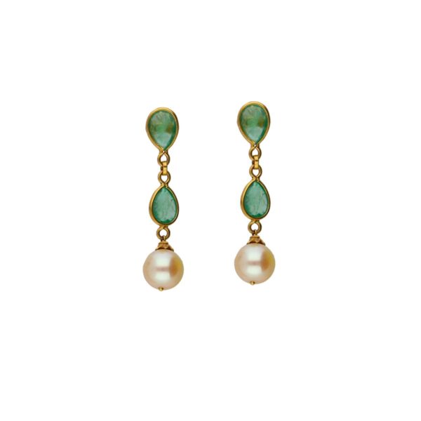 22KT Drop Style Contemporary Gold EarringsProduct code:JPMA-19-109Gold weight:2.78Stone weight:2.2Stone Name:South sea Pearls , Emerald Gold purity:22KTBrand:Sri Jagdamba Pearls Dealer