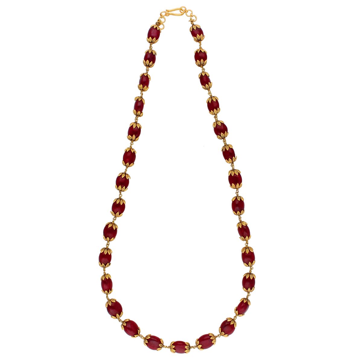 22KT Designer Gold Chains Style Contemporary Gold ChainsProduct code:JPFEB-20-182Gold weight:21.5Stone weight:205.2Stone Name: ,Ruby Gold purity:22KTBrand:Sri Jagdamba Pearls Dealer