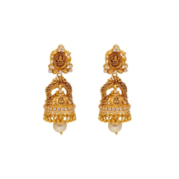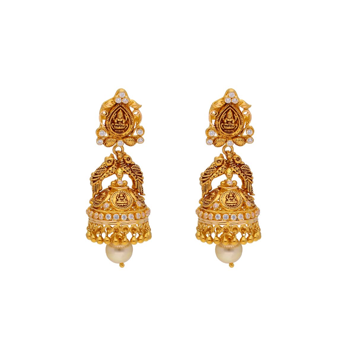 22KT Jhumkas Style Contemporary Gold EarringsProduct code:JPFEB-20-198Gold weight:14.97Stone weight:2.55Stone Name:South sea Pearls , Cubic zirconia Gold purity:22KTBrand:Sri Jagdamba Pearls Dealer