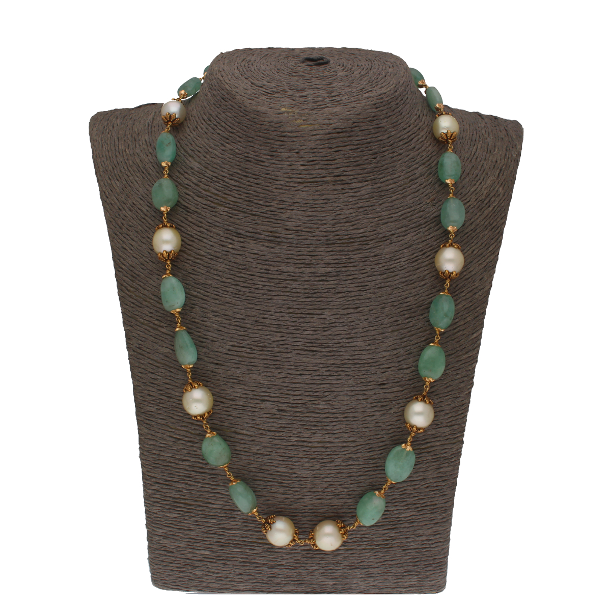 Product code:JPOCT-22-139Gold weight:12.78GramsStone weight:123.05 CaratsStone Name:South Sea Pearls,emeralds,,Pearl Weight:101.5 CaratGold purity:22KTBrand:Sri Jagdamba Pearls Dealer