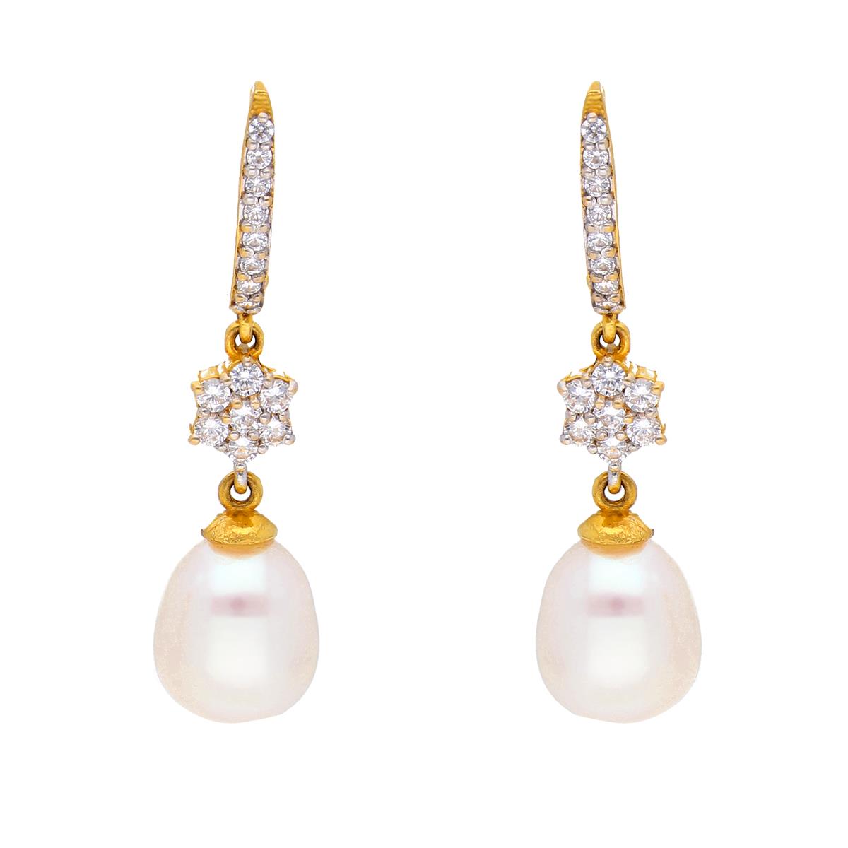 22KT Studd With Hanging Style Fashion Gold EarringsProduct code:JPJAN-20-36Gold weight:4.46Stone weight:1.2Stone Name:Freshwater Pearls , Cubic zirconia Gold purity:22KTBrand:Sri Jagdamba Pearls Dealer