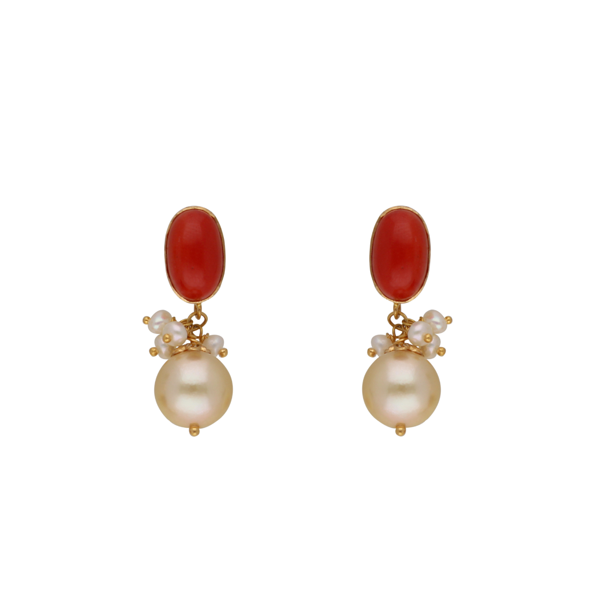 Product code:JPOCT-22-77Gold weight:2.5Grams Stone weight:5 Carats Stone Name:South Sea Pearls,Coral,, Pearl Weight:10.6 Carat Gold purity:22KT Brand:Sri Jagdamba Pearls Dealer