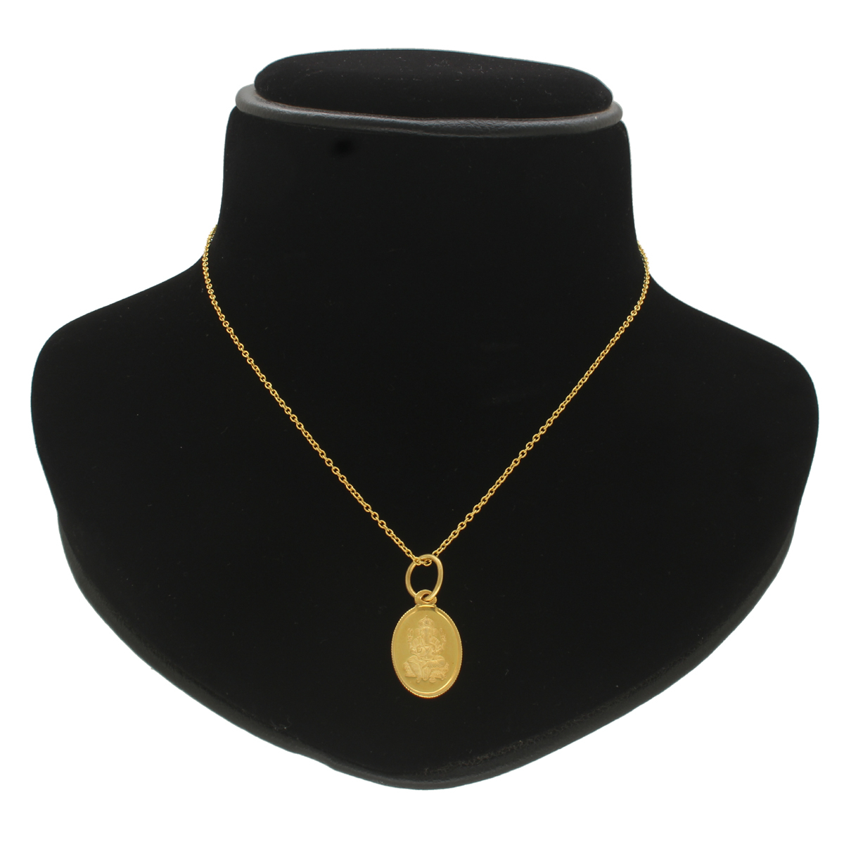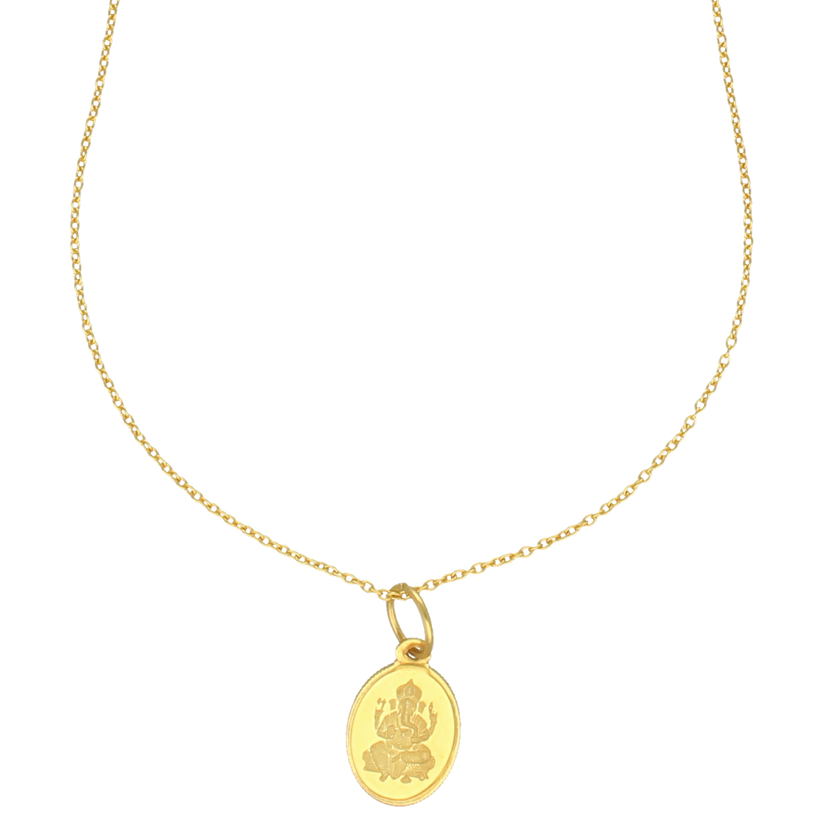 This 2 Grams Pure Silver Ganesha Oval Pendant features a detailed engraving of Lord Ganesha, symbolizing wisdom and success. The oval-shaped pendant is crafted from high-quality pure silver and comes with a matching chain, offering both elegance and spiritual significance. Its lightweight design makes it ideal for daily wear or as a thoughtful gift for special occasions.