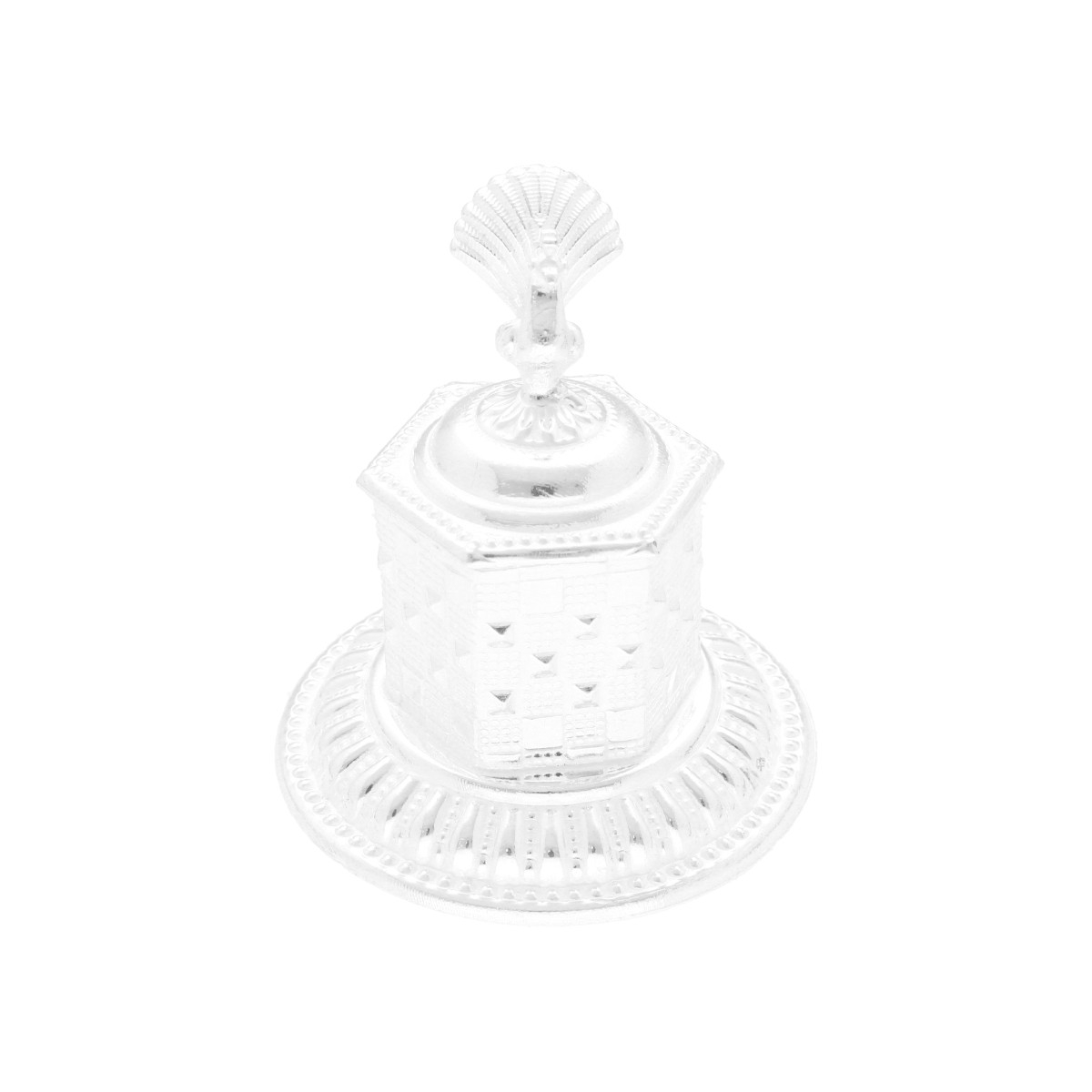 This kumkum bharni has a stunning peacock lid. It adds elegance to your offerings.