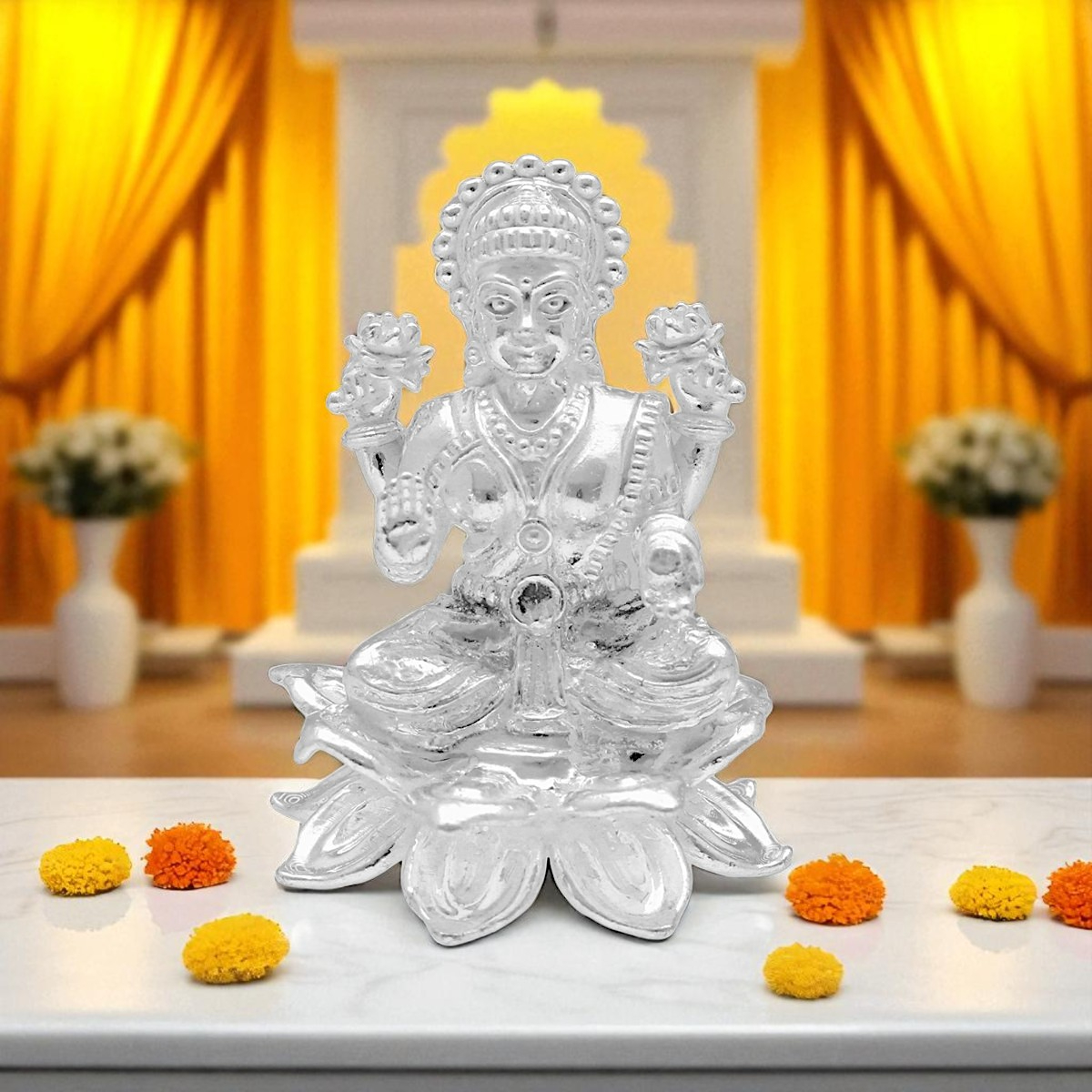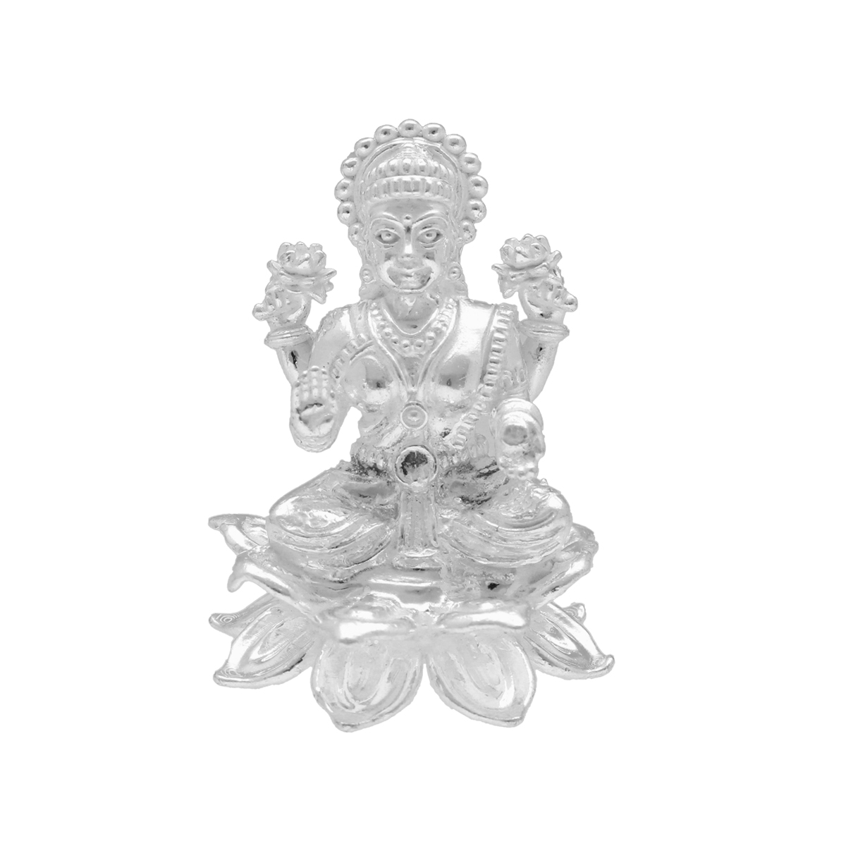 Enhance your spiritual space with this silver Laxmi Murti idol, embodying blessings and prosperity.