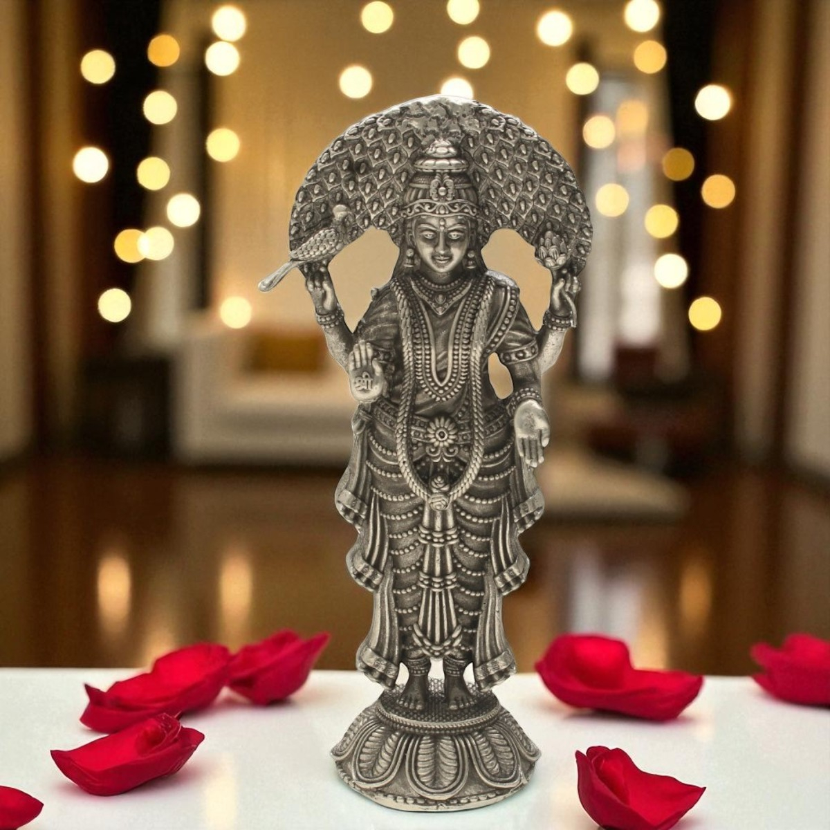 An elegant silver idol of Vasavi Mata, symbolizing strength and nurturing energy in your home.