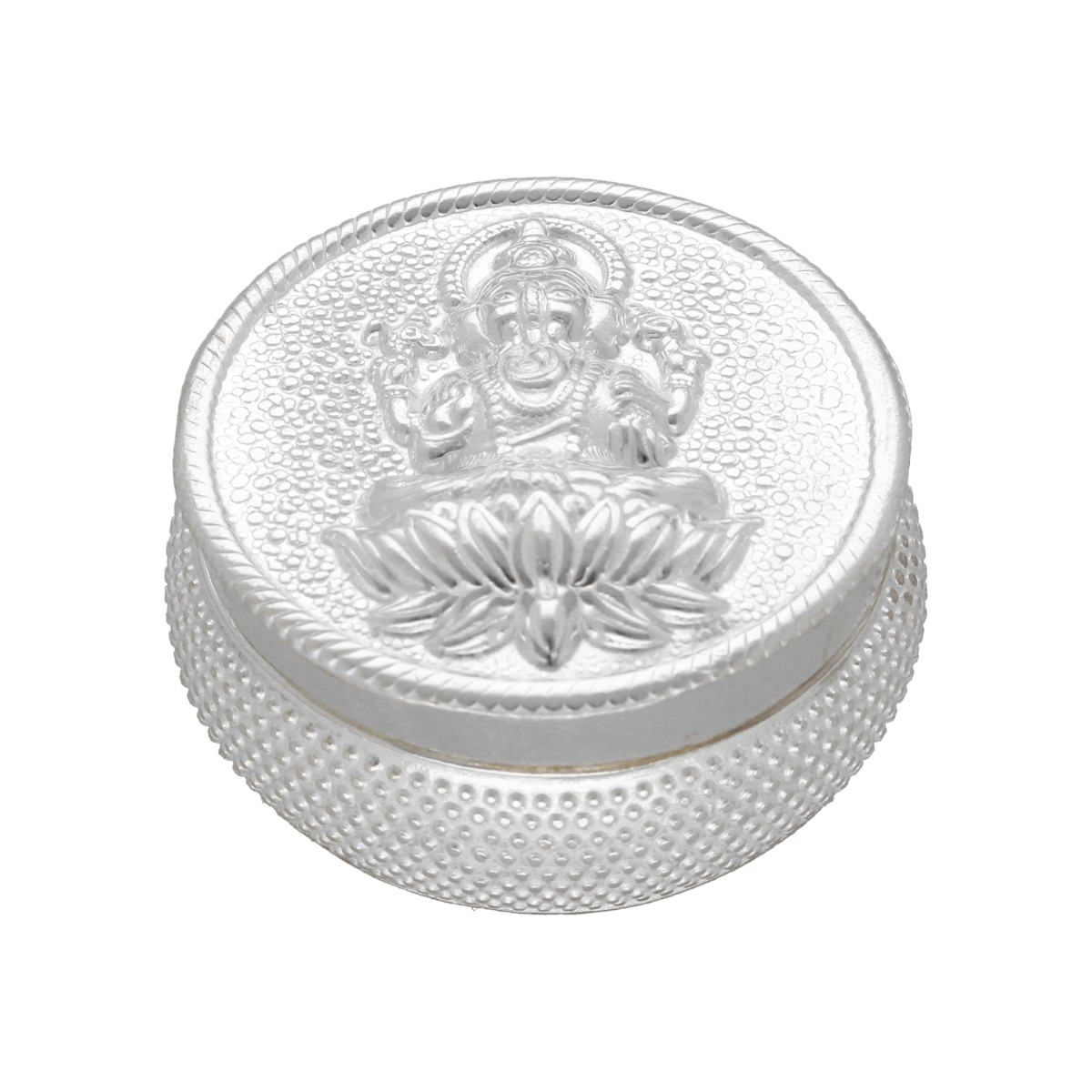 This silver box is designed for Ganesh worship. It adds a sacred touch to your pooja.