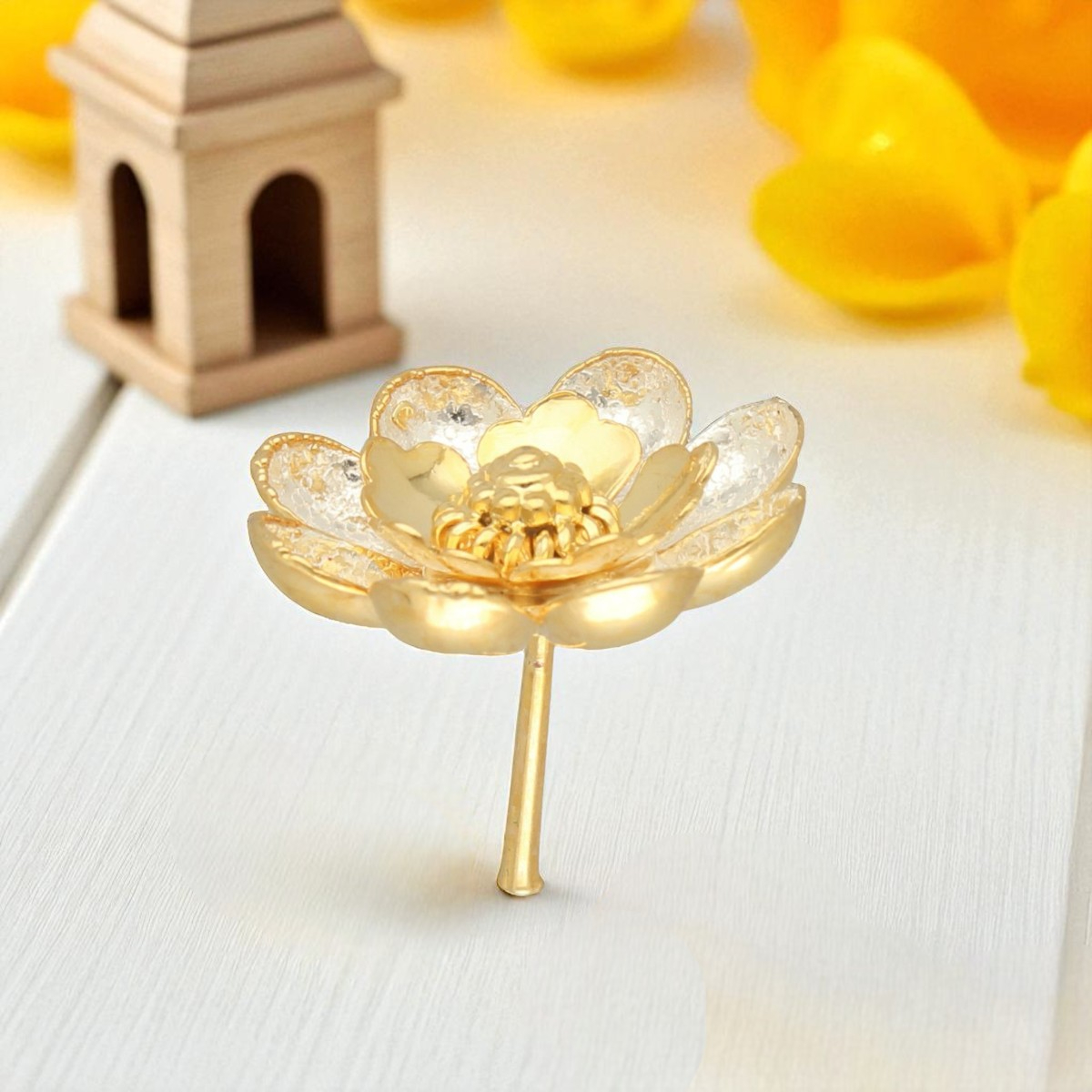 Embrace serenity with this stunning golden silver lotus flower, a symbol of purity and enlightenment in your space.