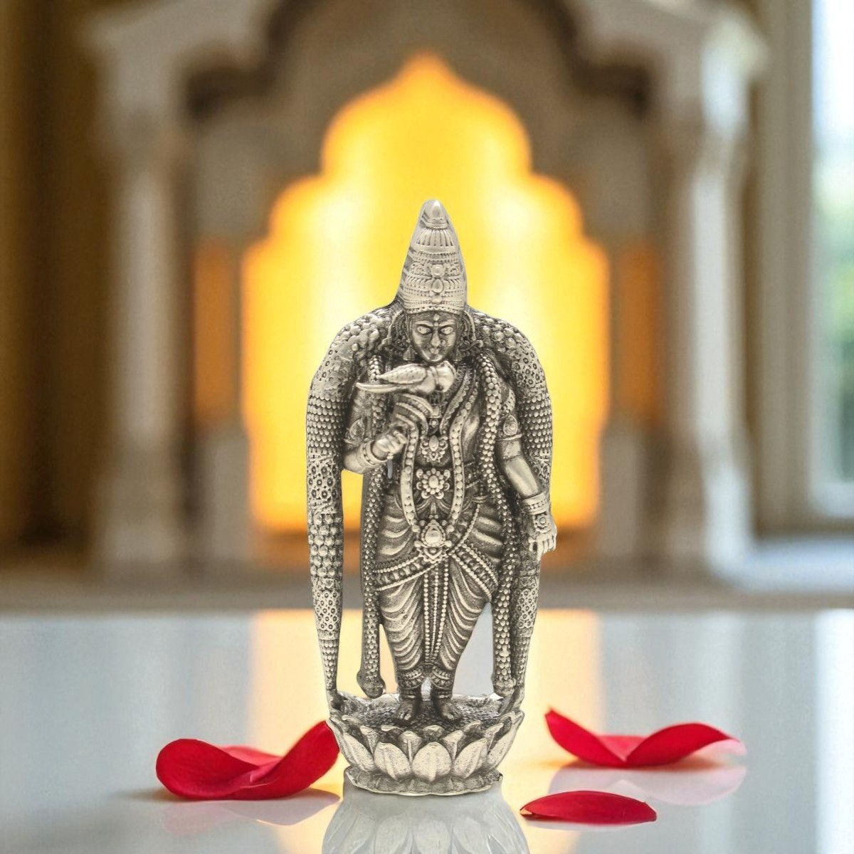 A petite silver idol of Madurai Menakshi Devi, perfect for intimate worship and meaningful gifts.