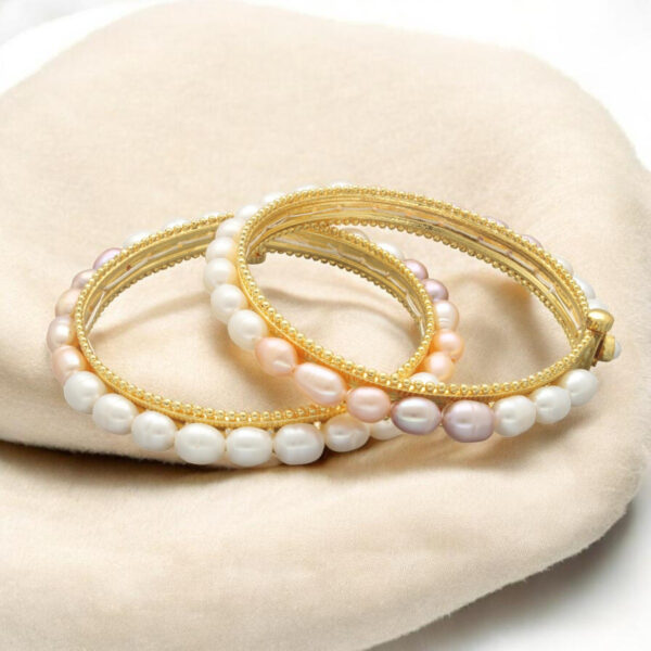 “Classic Pearl Bangles: Timeless beauty meets simplicity in this set of refined bangles adorned with lustrous pearls. The classic design adds an elegant touch to any ensemble, making it a versatile accessory. Elevate your style with the Classic Pearl Bangles, a symbol of enduring grace and understated sophistication.”