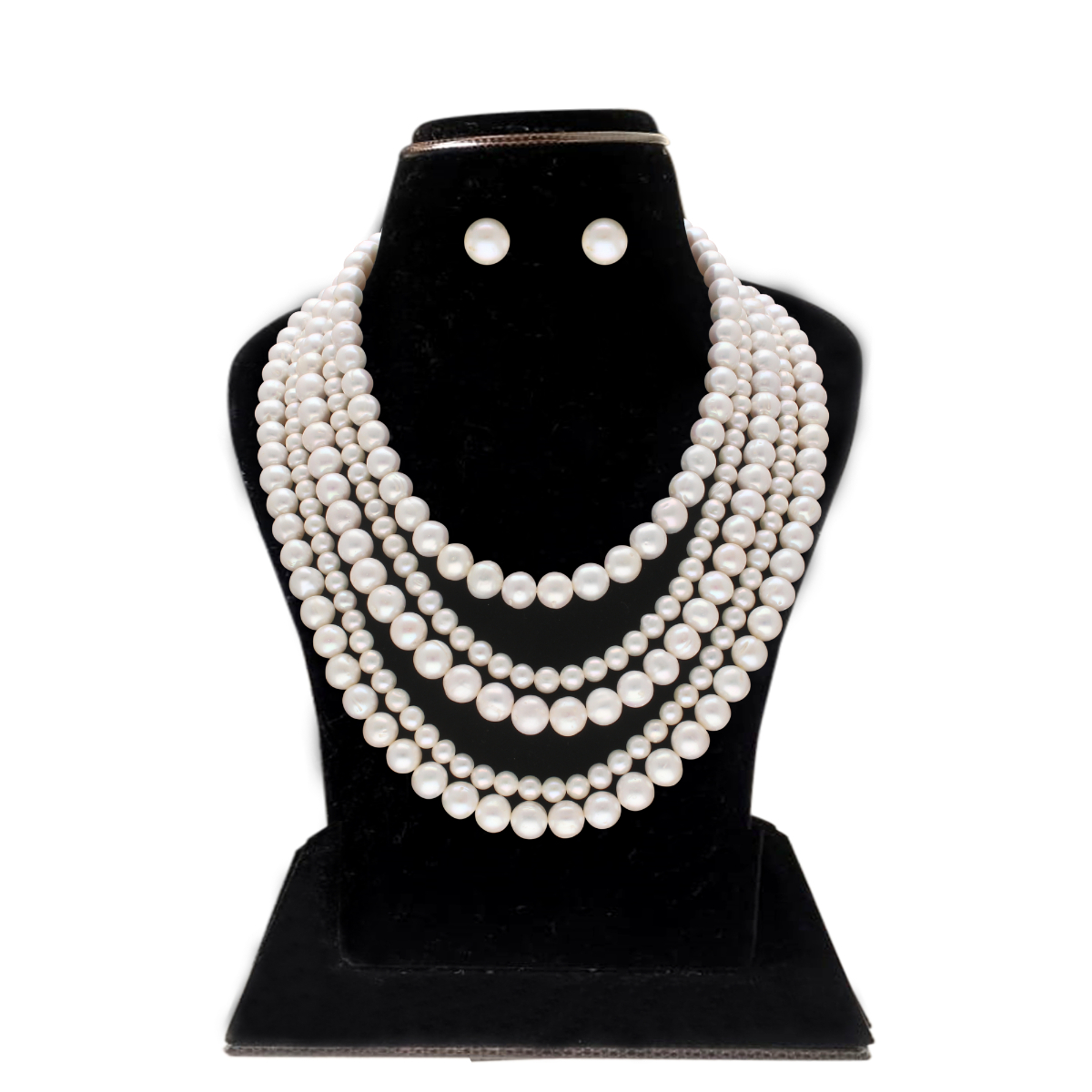The Classic White Round 5 Lines Pearl Necklace is a timeless masterpiece of elegance. Featuring five meticulously arranged strands of lustrous pearls, it adds a touch of sophistication to any attire. This necklace is a versatile accessory, seamlessly complementing both casual and formal ensembles. Elevate your style with the classic beauty of the White Round 5 Lines Pearl Necklace.