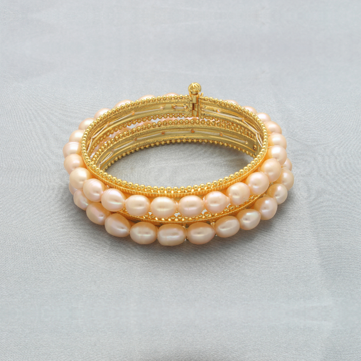 âÃÂÃÂClassique Pearl Bangles: Timeless sophistication meets contemporary style in this set of elegant pearl-adorned bangles. The classic design and lustrous pearls make it a versatile accessory for any occasion. Elevate your wristwear with the Classique Pearl Bangles, a refined expression of enduring grace and chic simplicity.âÃÂÃÂ