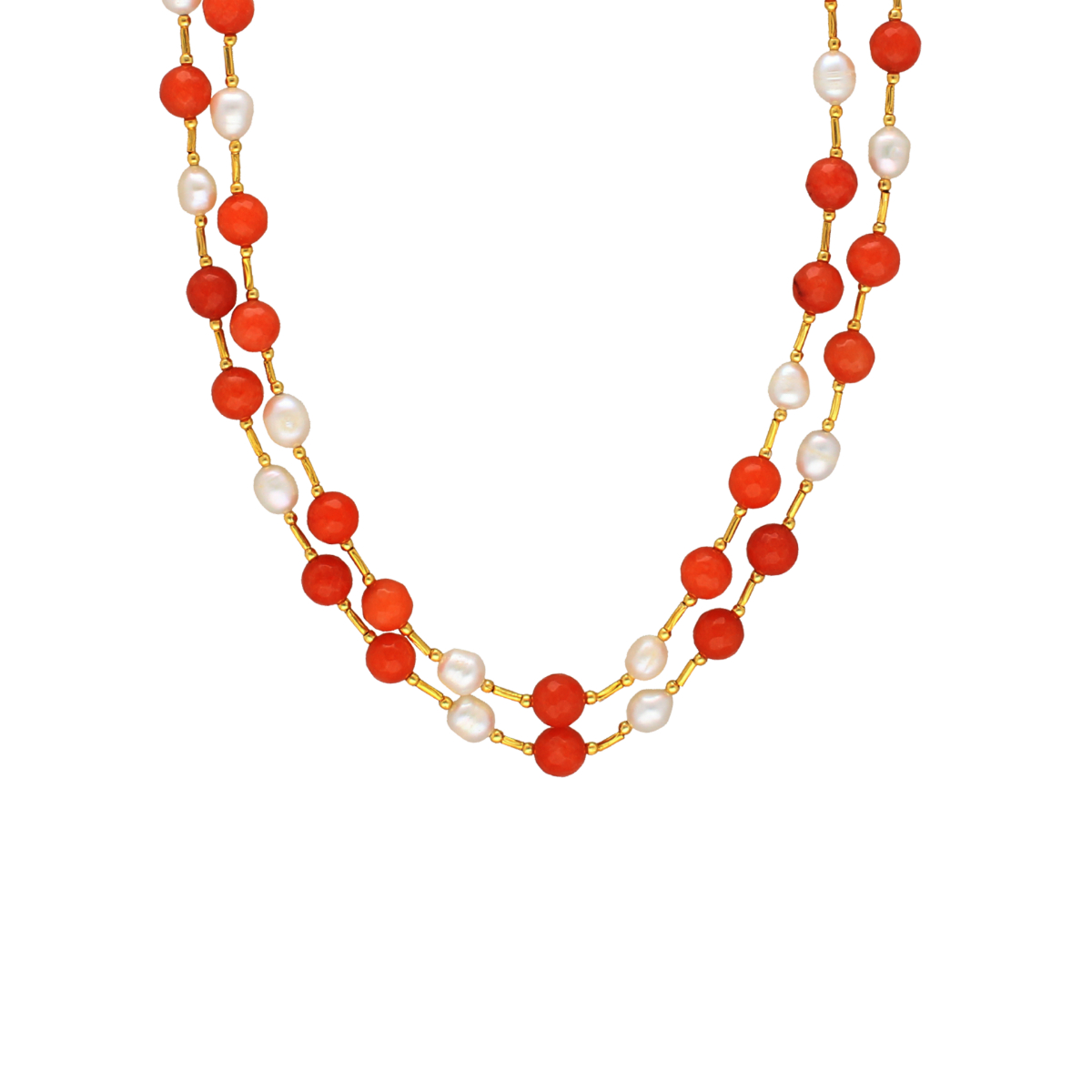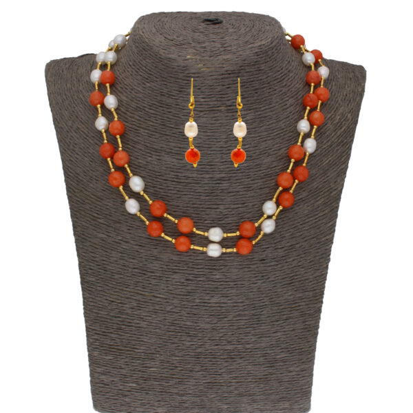 Drape yourself in elegance with the Coral Stone Pearl Necklace. This chic accessory features lustrous pearls with a hint of coral, adding a touch of sophistication to any ensemble. Elevate your style with this refined and captivating pearl necklace.