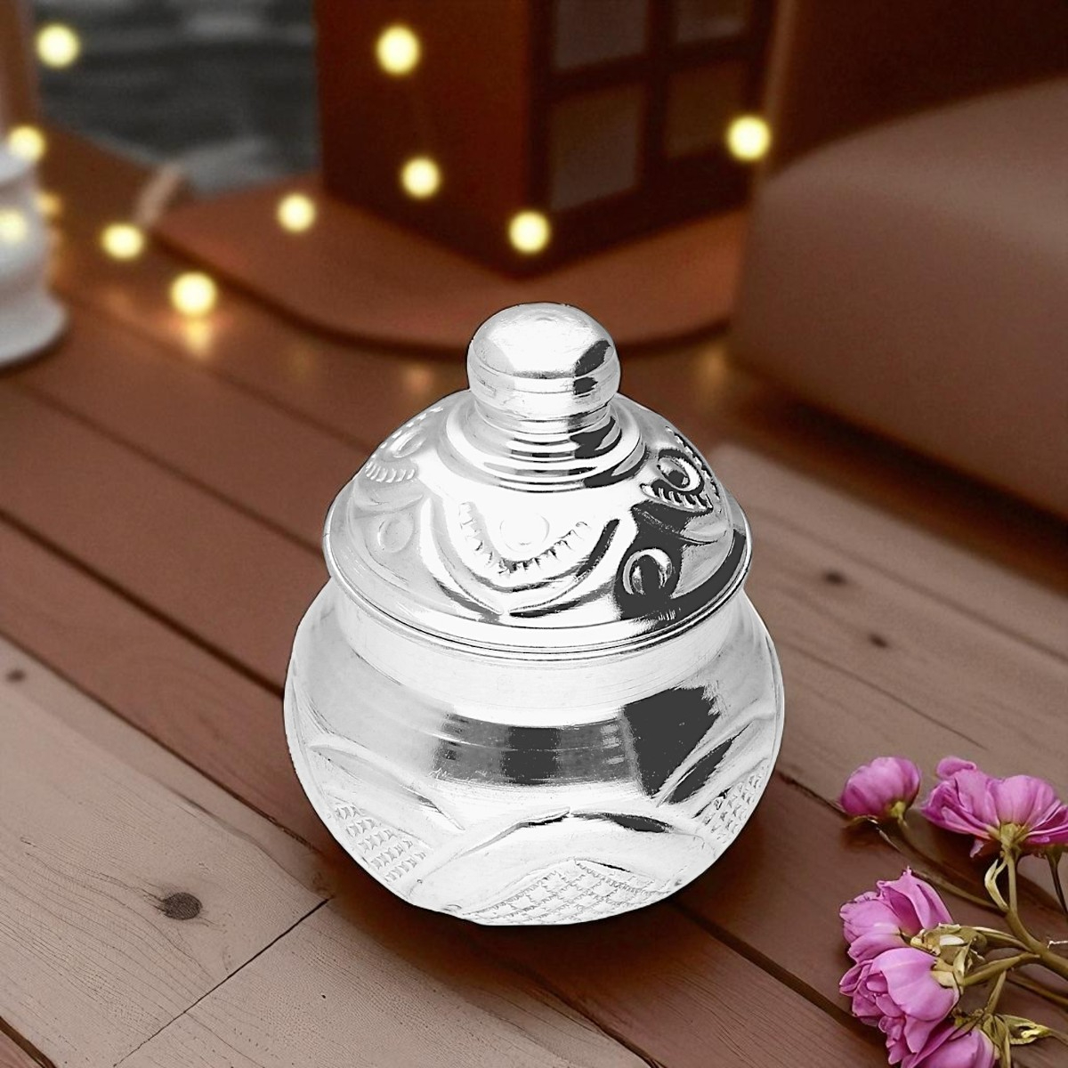 Whether it an auspicious occasion or just another day, this Designer Kumkum Dabbi will help bring positivity to your pooja room. Order online today!