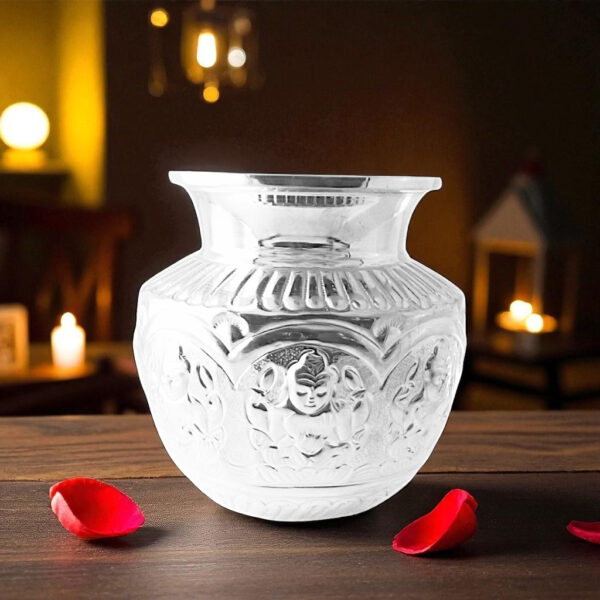 Whether its an auspicious occasion or just another day, this Dhana Lakshmi Silver Kalash will help bring positivity to your pooja room. Order online today!