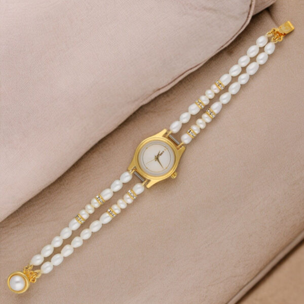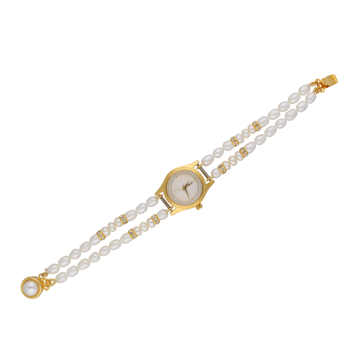 Elevate your wristwear with the Eeshika 2 Lines Round Pearl Wrist Watch. Meticulously designed, this watch features two lines of lustrous pearls, blending classic elegance with modern functionality. Adorn your wrist with the timeless charm of the Eeshika watch.
