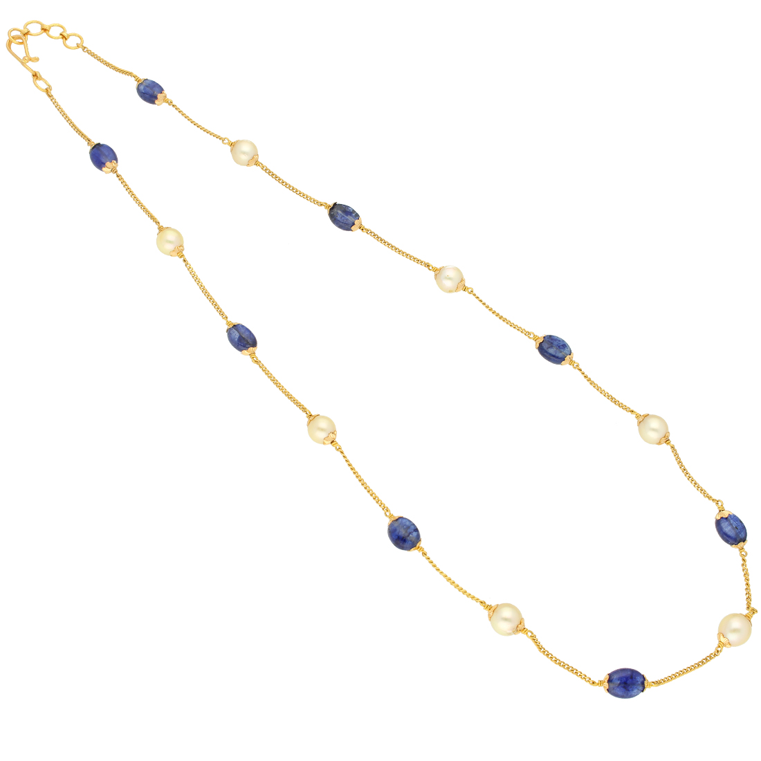 The Eliza Blue-Saphire With Pearl Gold Chain is like no other. This piece is a fusion of traditional styles and modern trends and is guaranteed to steal your heart. Make your purchase today.