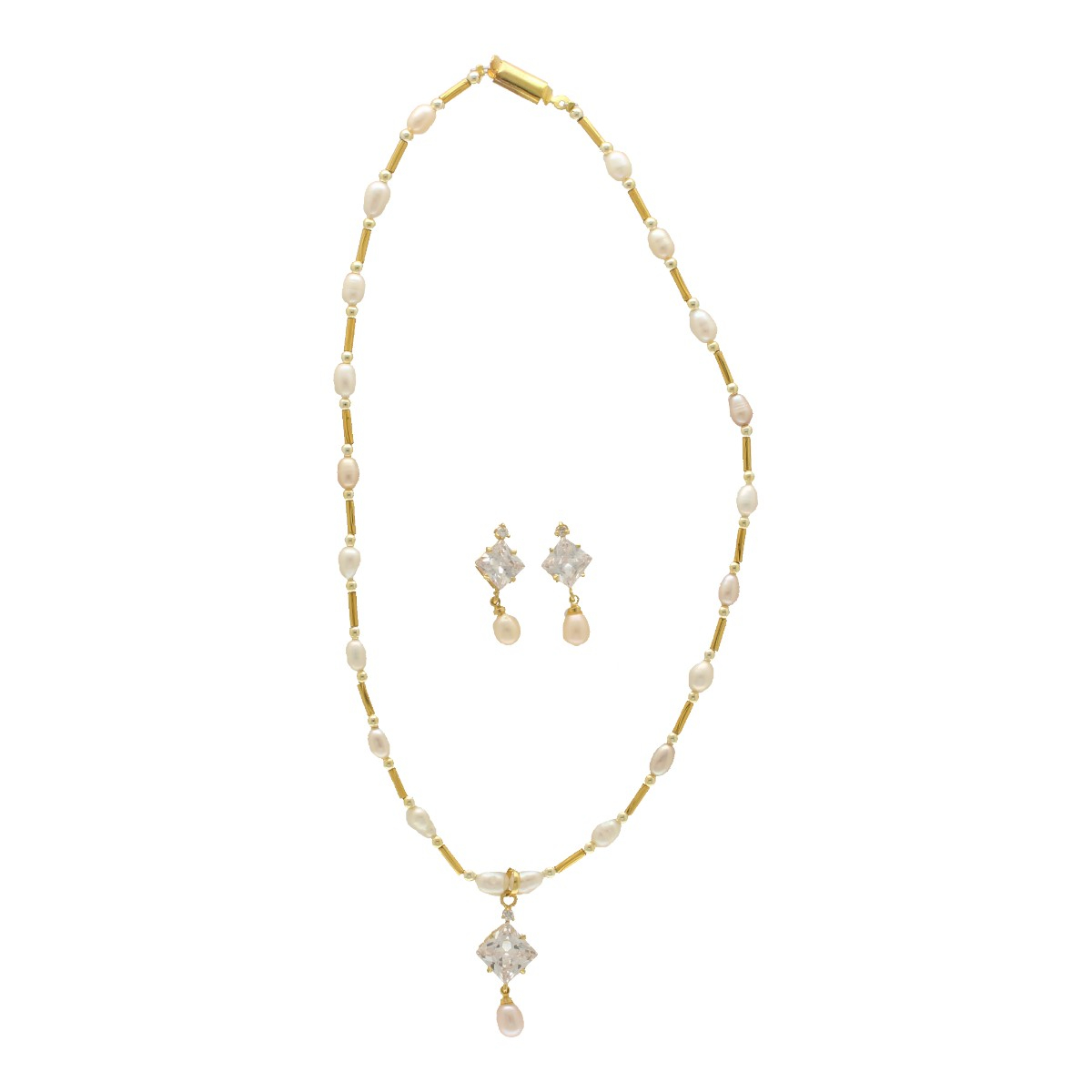 This enchanting pendant set features radiant pearls for a luxurious, ethereal look. Its graceful design makes it ideal for evening wear and special events.