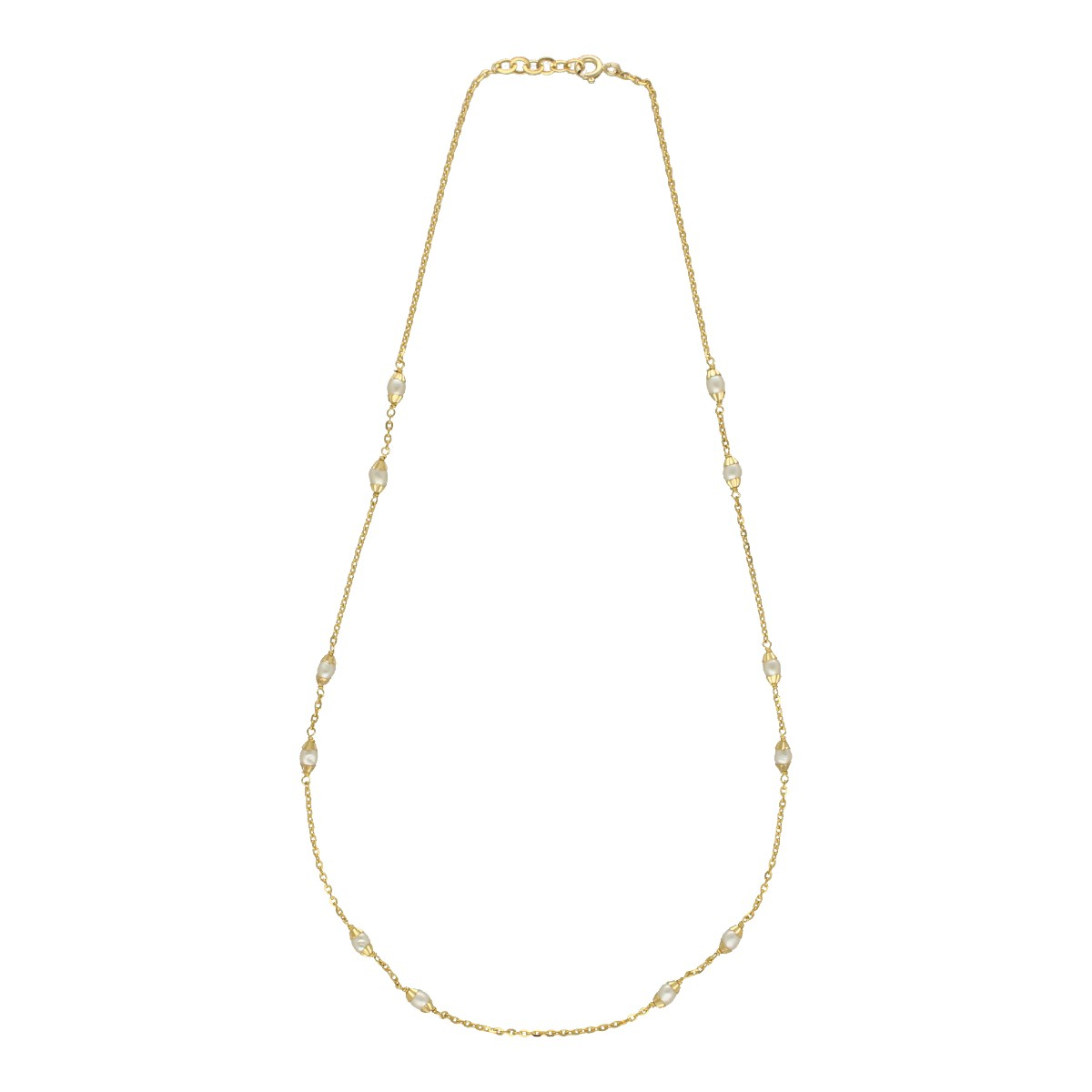 Illuminate your elegance with the Hana 18Kt Gold Pearl Chain, a lightweight masterpiece that gracefully intertwines lustrous pearls with radiant gold for a timeless, sophisticated allure.
