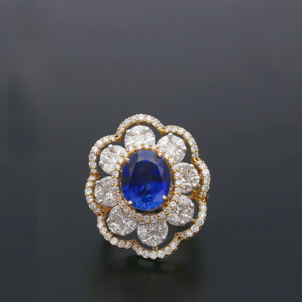 Hiral Diamond RingsProduct code: JPSEP-20-300Gold weight:10.24 GramsDiamond weight:2.56 CaratsDiamond Color:EFDiamond Cut:VVSStone weight:4.34 CaratsStone Name:Colour Stones Gold purity:14KTBrand:Sri Jagdamba Pearls Dealer
