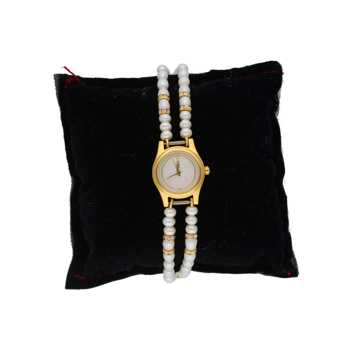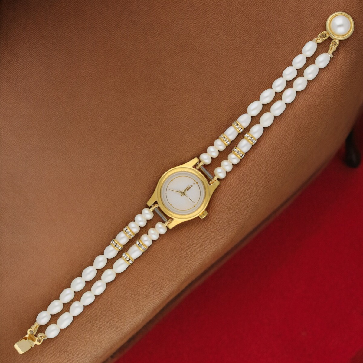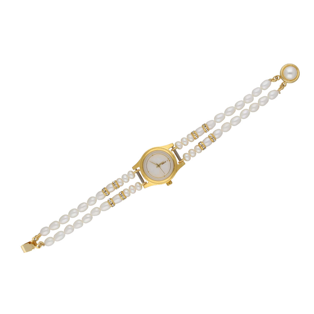 Upgrade your wrist game with the Jabeen 2 Lines Round Pearl Wrist Watch. Meticulously designed, this watch features two lines of lustrous pearls, combining classic elegance with modern style. Elevate your look with the timeless charm of the Jabeen watch.