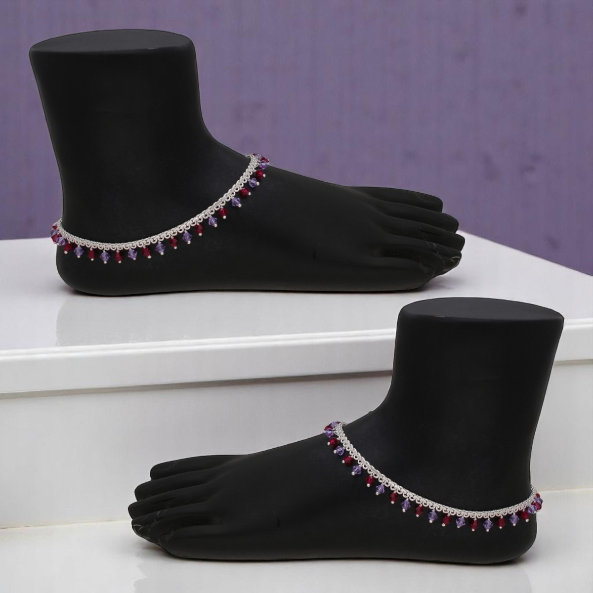 Featuring serene stone accents in 80% silver, this payal anklet offers a calm, elegant aesthetic. Its stylish yet subtle design complements both ethnic and contemporary outfits. Designed for durability, it retains its beauty over time.