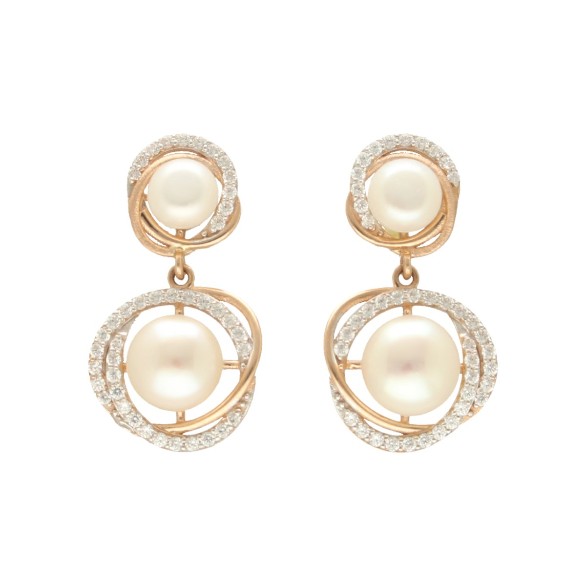 Softly glowing these 18KT rose gold earrings with freshwater pearls offer a sophisticated and timelessly chic design.