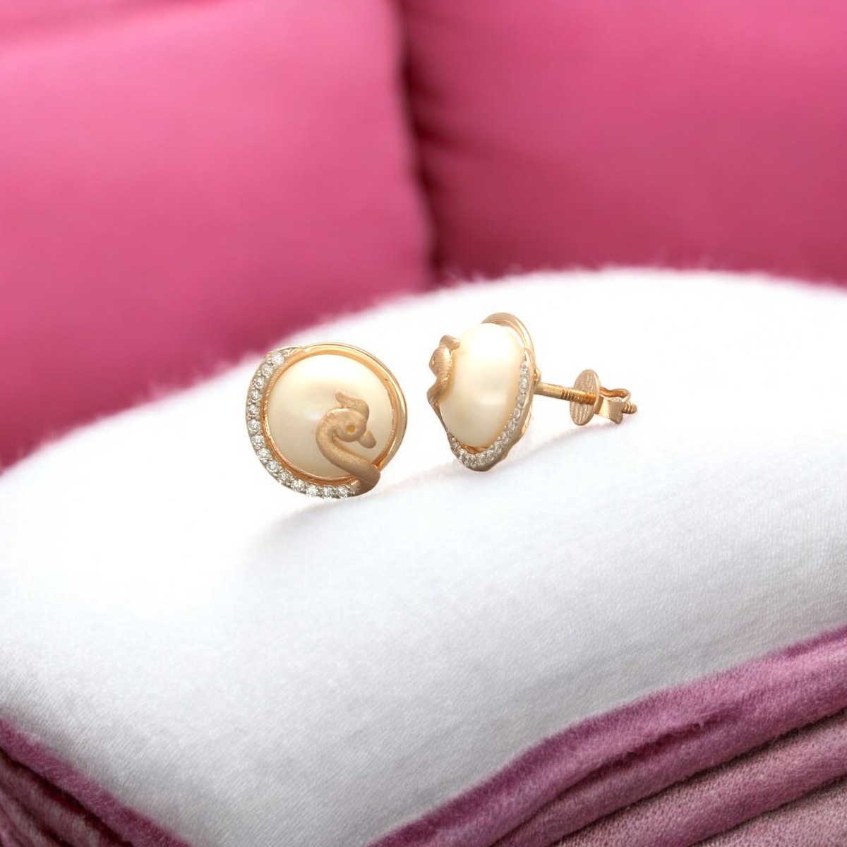 Elegantly poised these 18KT rose gold earrings with pearls capture the essence of timeless luxury and refined beauty.