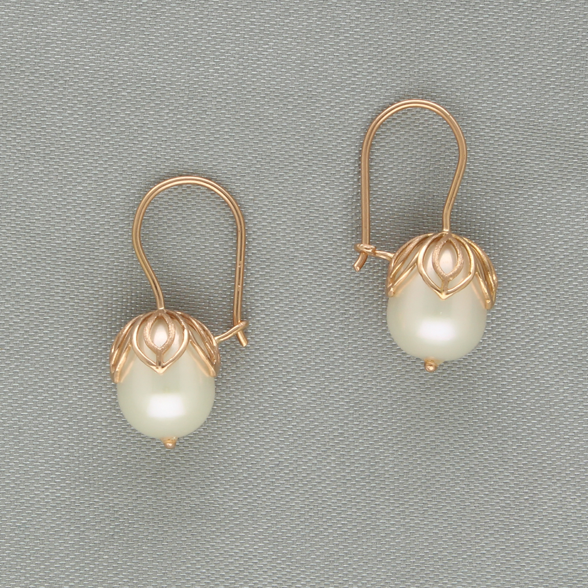 These 18KT rose gold earrings with radiant freshwater pearls are elegantly designed to add a touch of classic sophistication.