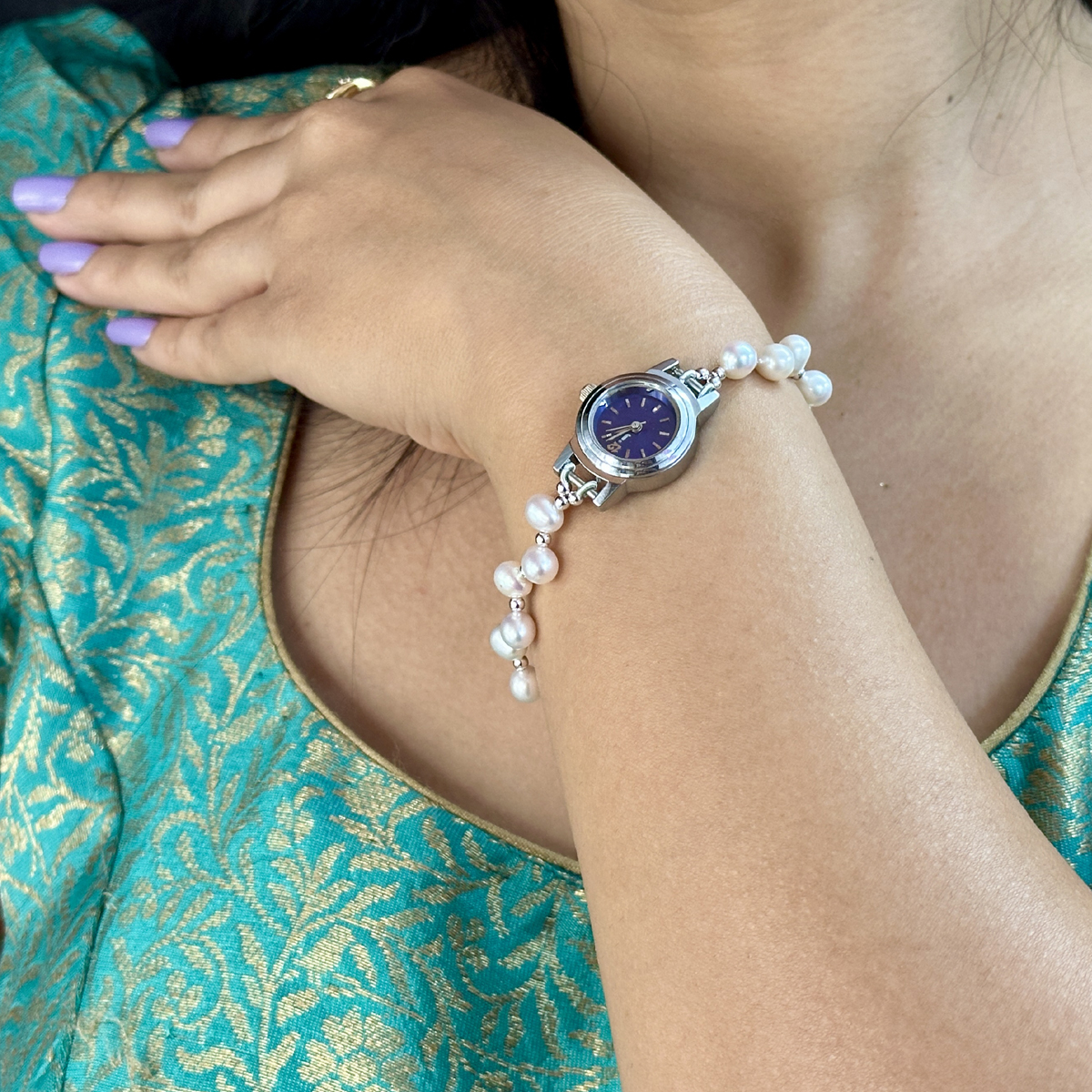 The Naira 1 Line Pearl Watch epitomizes elegance with a single line of pearls accentuating its minimalist design, making it a timeless accessory for any occasion.