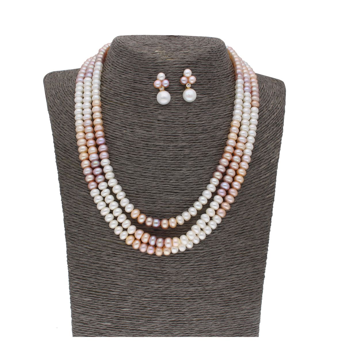 The Naomi Button Pearl Set is a chic and contemporary ensemble with three lines of meticulously arranged button-shaped pearls. Combining modern design with timeless elegance, this set effortlessly adds sophistication to any outfit, making it a versatile accessory for various occasions. Elevate your style with the Naomi Button Pearl Set refined and captivating allure.