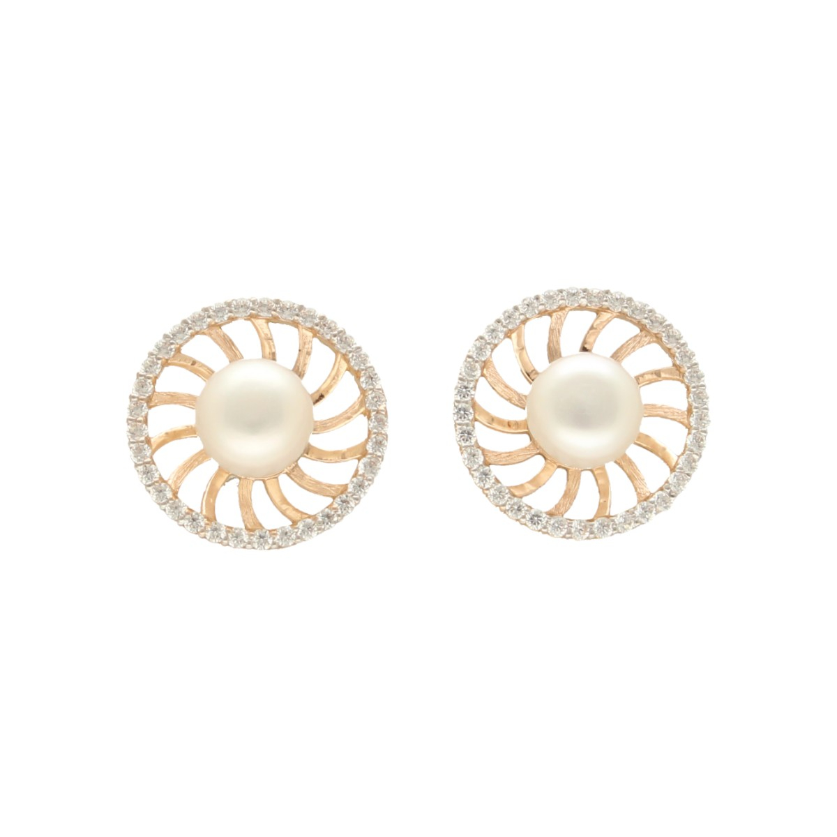 Sophisticated and graceful these 18KT rose gold earrings with freshwater pearls deliver an aura of timeless charm.