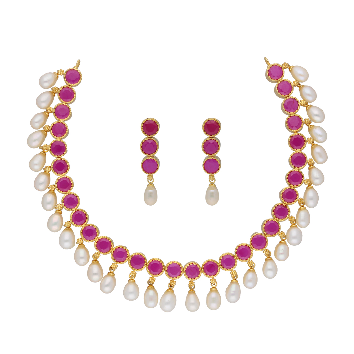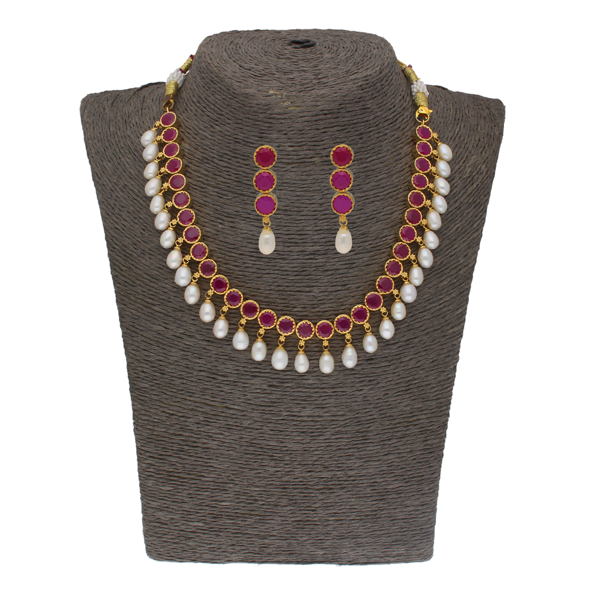 Elevate your elegance with the Pink Stone Pearl Necklace. This chic accessory features lustrous pearls with a hint of pink, adding a touch of sophistication to any neckline. Make a statement with this refined and captivating pearl necklace.