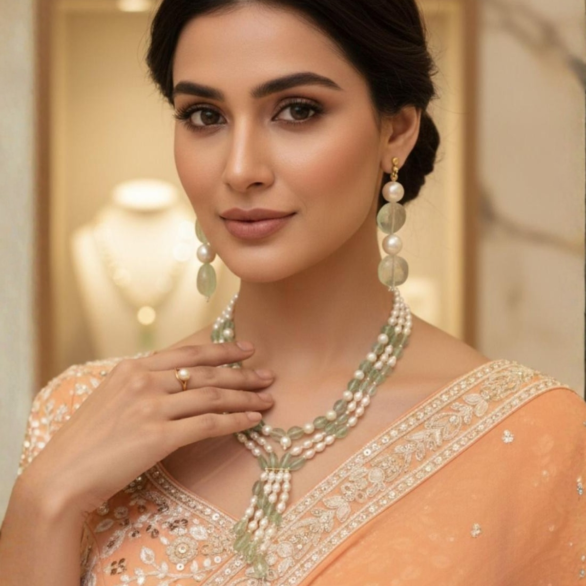 Smooth, shimmering pearls inspired by the calm of pristine waters. This piece delivers a refreshing elegance, perfect for elite gatherings, weddings, and grand celebrations because luxury deserves the limelight.