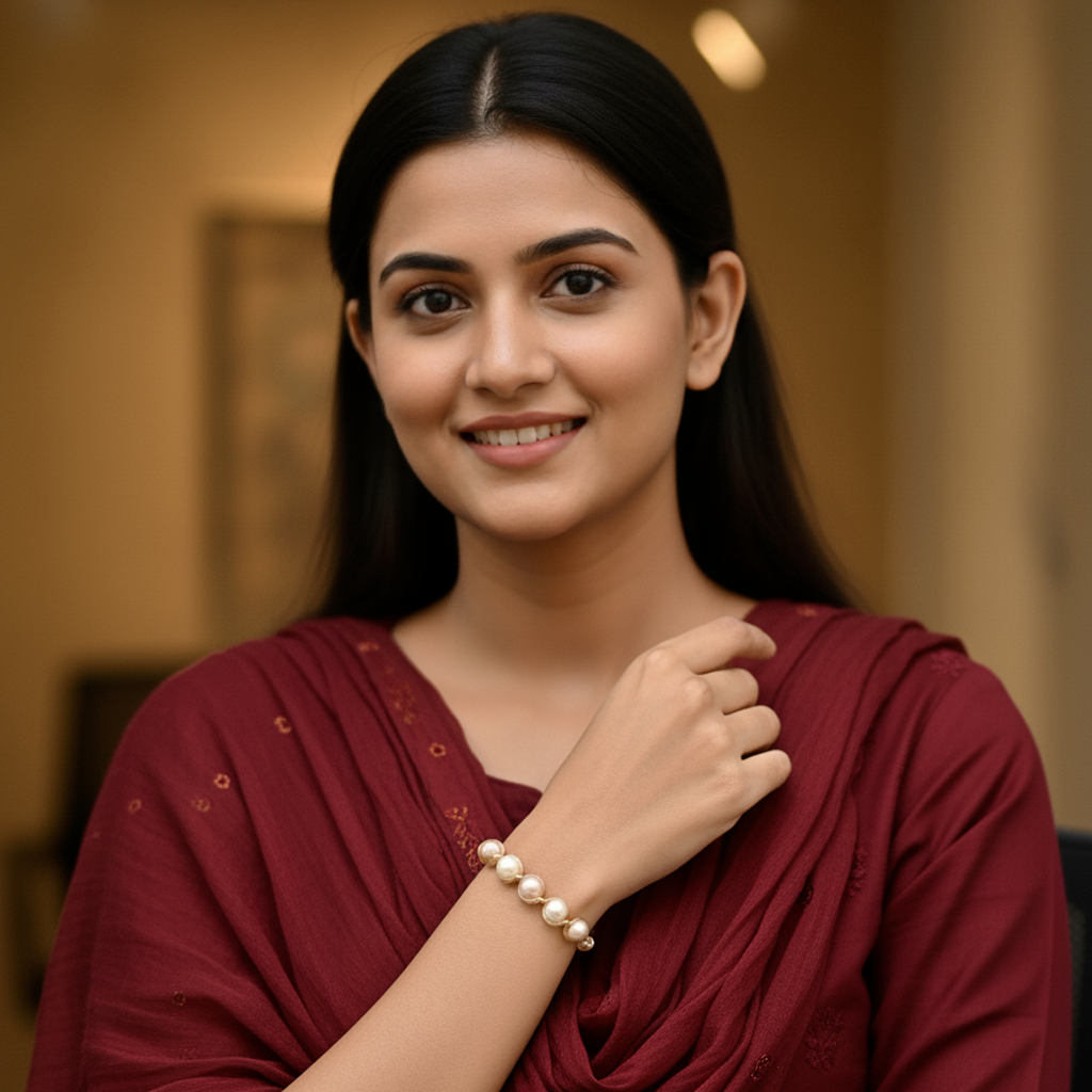 Gleaming with gold and pearls, this bracelet is an essential piece for any elegant jewelry collection.
