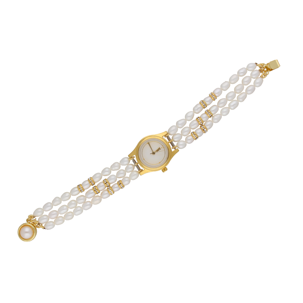 Elevate your wristwear with the Quincy 3 Lines Round Pearl Wrist Watch. Meticulously designed, this watch features three lines of lustrous pearls, blending classic elegance with modern functionality. Adorn your wrist with the timeless charm of the Quincy watch.