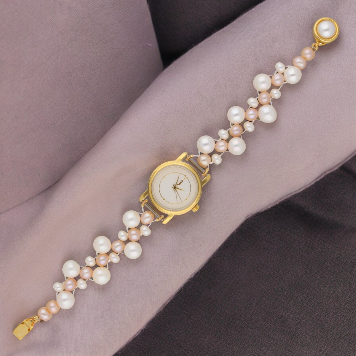 Upgrade your wrist game with the Rabhya 3 Lines Pearl Wrist Watch. Meticulously designed, this watch features three lines of lustrous pearls, combining classic elegance with modern style. Elevate your look with the timeless charm of the Rabhya watch.