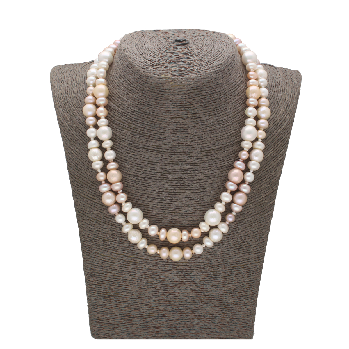The Round 2 Lines White Pearl Necklace is a chic and timeless accessory. Featuring two perfectly arranged strands of lustrous pearls, it adds a touch of sophistication to any look. This necklace effortlessly complements both casual and formal attire, making it a versatile addition to your collection. Elevate your style with the refined beauty of the Round 2 Lines White Pearl Necklace.