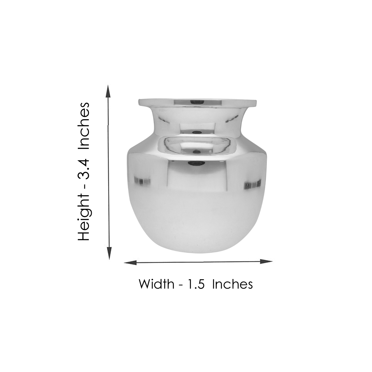 Silver Kalash for PujaProduct Features:Silver Weight : 104.6 GramsSilver Purity : 80%Height: 3.4 InchesWidth: 1.5 InchesBrand : Sri Jagdamba Pearls