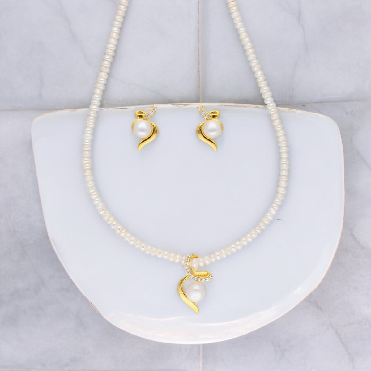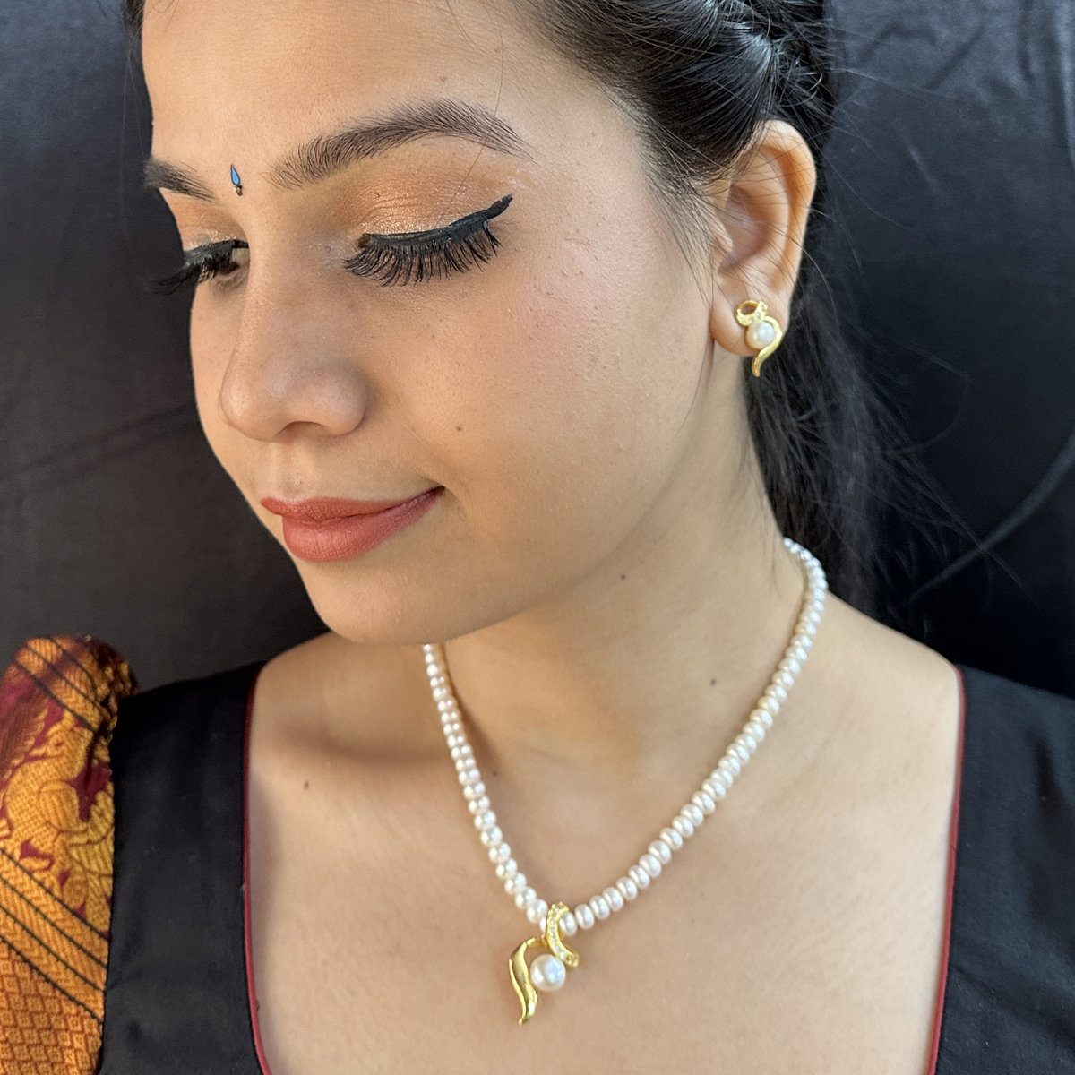 Illuminate your look with the Aabha Pearl Pendant Set, a radiant combination of grace and sophistication. This set features a luminous pearl pendant that adds a touch of timeless beauty to any ensemble. Elevate your style with the radiant allure of the Aabha Pearl Pendant Set.
