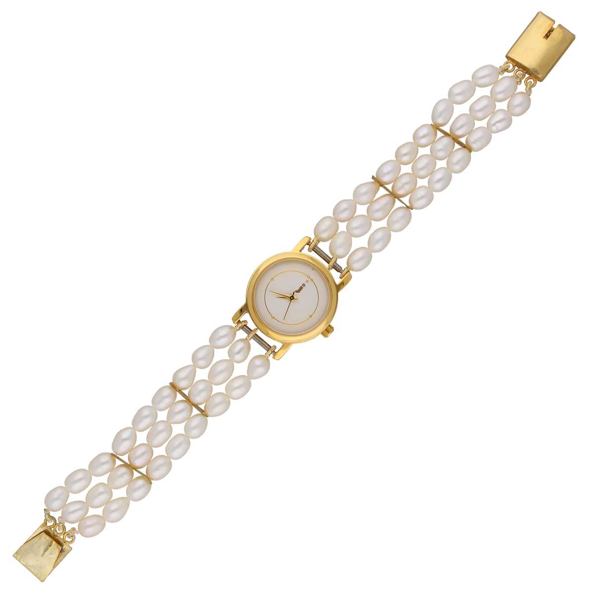 Oval Pearl Watch: Embrace timeless elegance with this chic timepiece. Adorned with lustrous oval pearls, the watch effortlessly combines classic design with modern sophistication, making it a versatile and stylish accessory for any occasion. Make a statement with the enduring allure of the Oval Pearl Watch.
