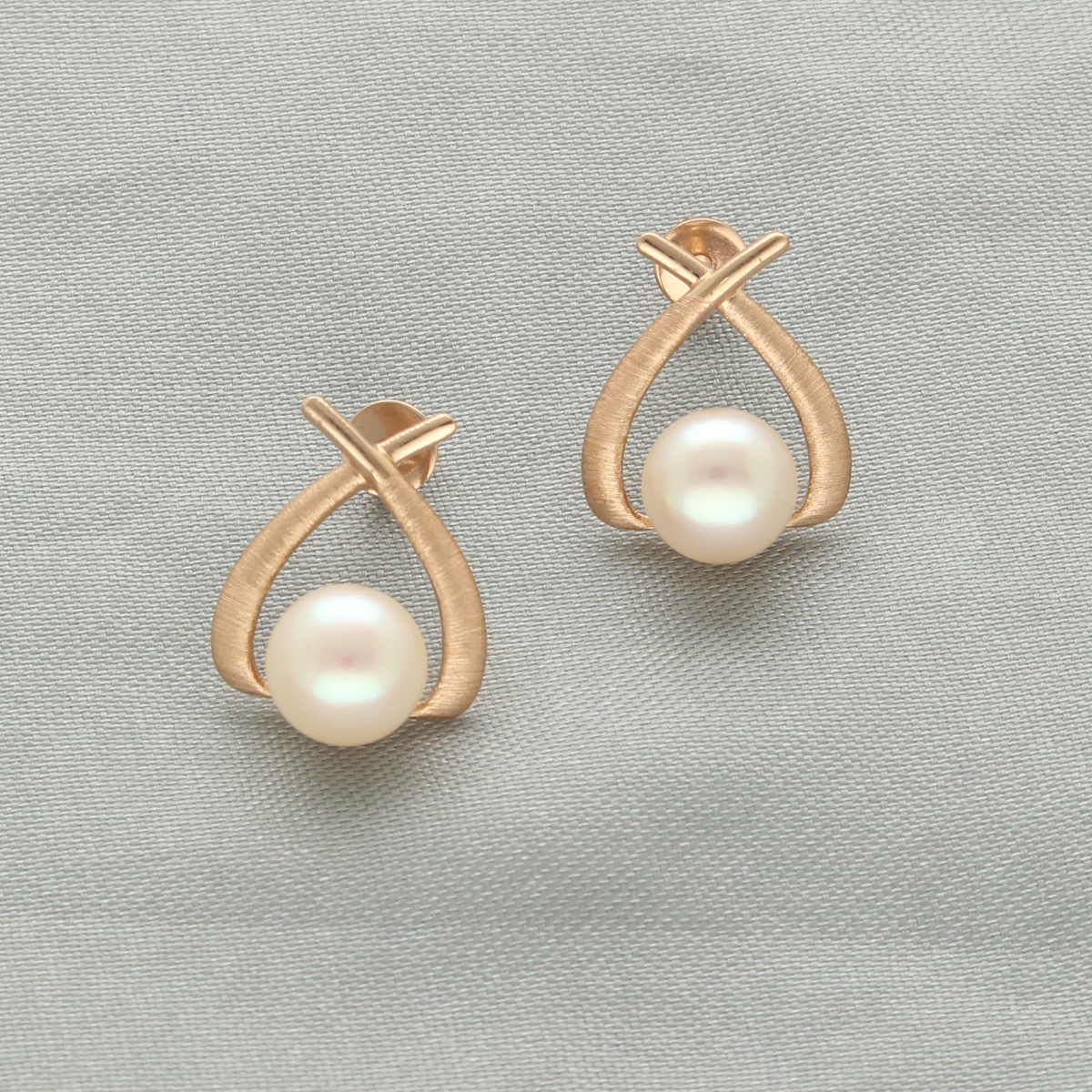 Sleek and graceful these 18KT rose gold earrings with radiant freshwater pearls offer an enduring appeal and understated luxury.