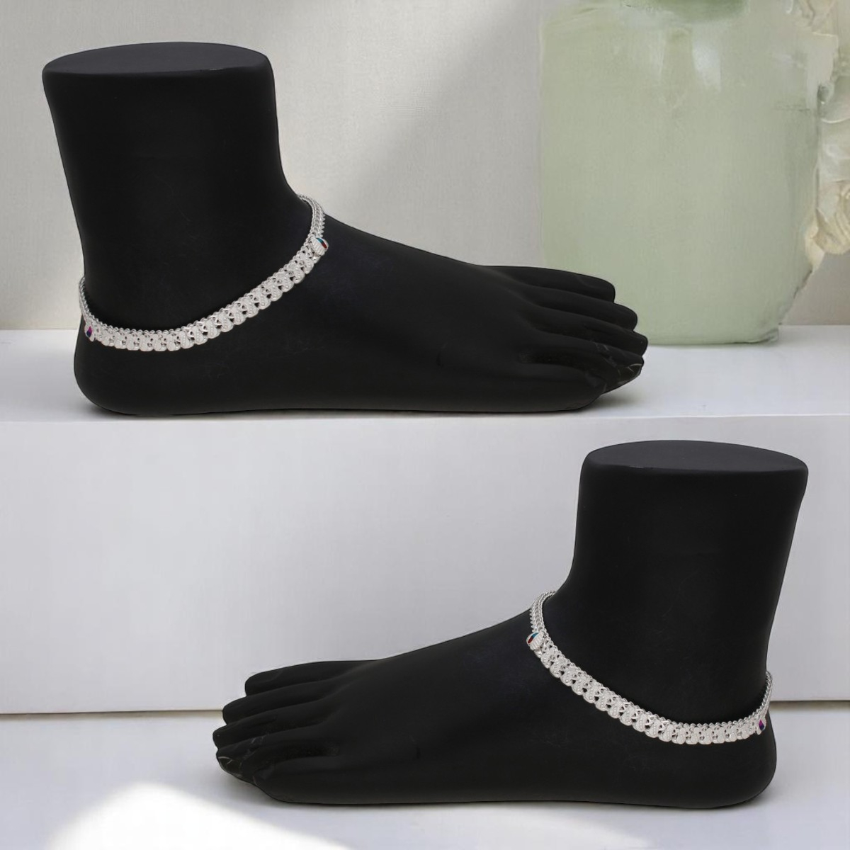 This payal anklet in 80% silver features a minimal yet striking design with a touch of modern elegance. Its clean lines make it a versatile accessory. Crafted for strength and style, its perfect for daily wear.