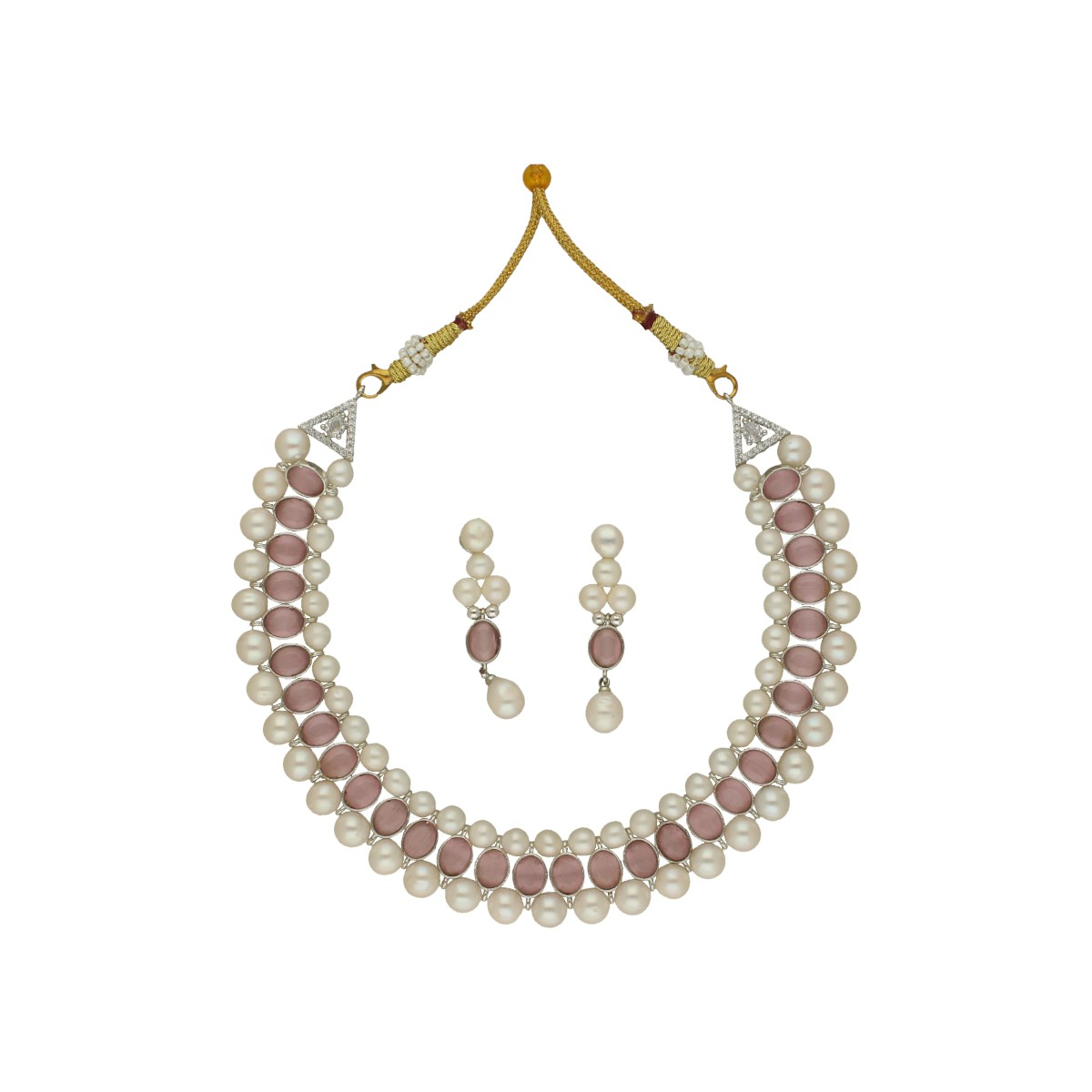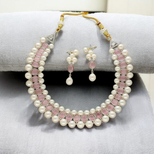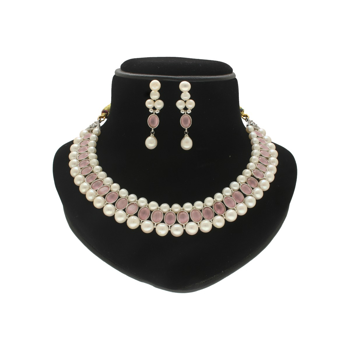 A modern, eye-catching choker set that combines sleek design with the elegance of pearls. It ideal for adding a touch of glamour to your outfit.